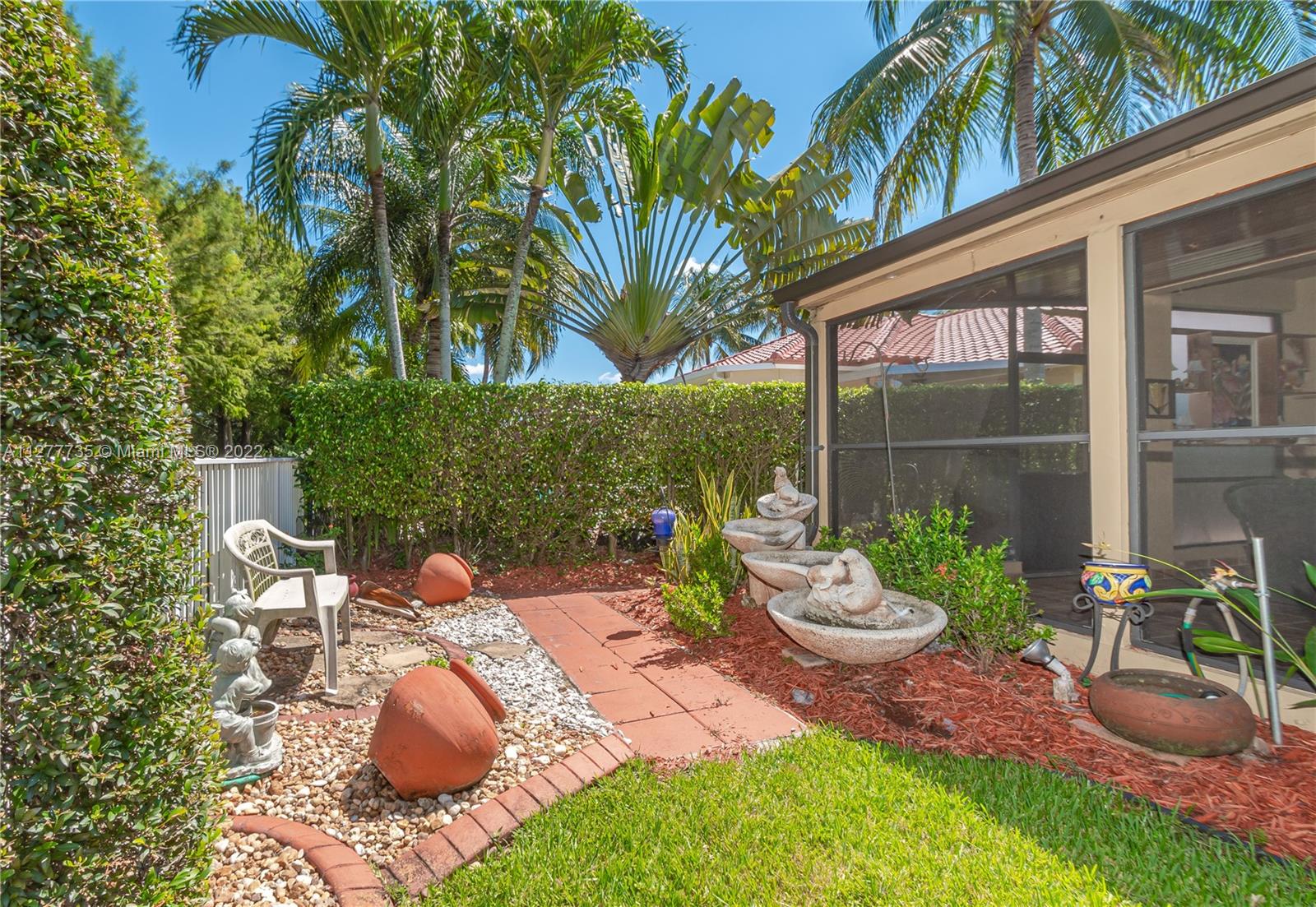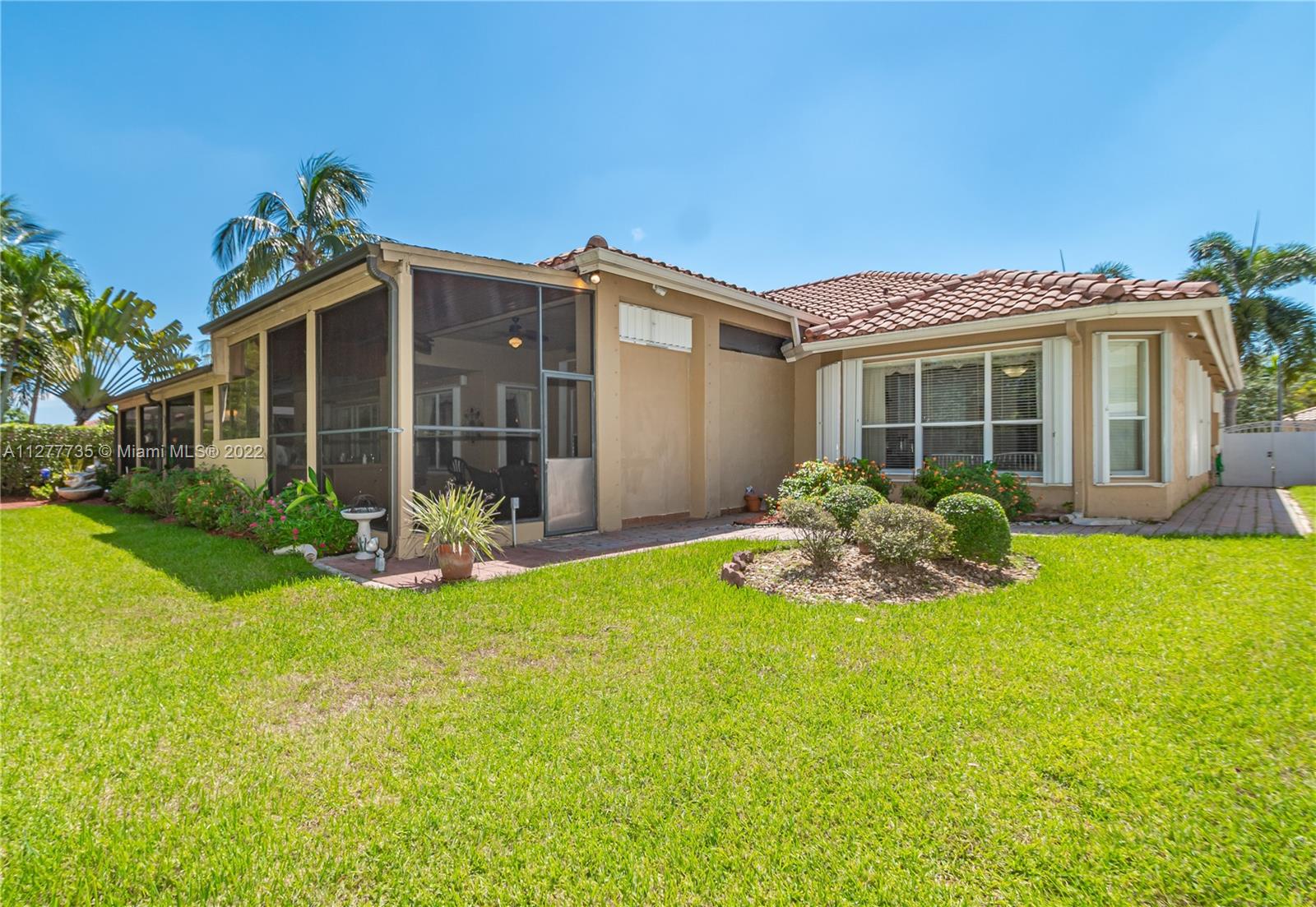 HURRY UNDER MKT VALUE!!! RARELY AVAILABLE IN THE SOUGHT AFTER ENCANTADA NEIGHBORHOOD ESTATE SIDE HOMES. THIS IMMACULATELY KEPT 4 BD/3BA/3 CAR GARAGE ONE STORY CORNICHE MODEL WAS ORIGINALLY EXPANDED BY DEVELOPER PROVIDING EVEN LARGER LIVING AREAS. THIS HOME HAS PROFESSIONAL LUSH LANDSCAPING, DOUBLE DOOR ENTRY, 11" CEILINGS, NEWER DUAL CENTRAL A/C, NEWER WATER HTR, ACCORDIAN SHUTTERS, UPGRADED KITCHEN CABINTERY W/GRANITE COUNTER TOPS, DOUBLE OVEN, LG KITCHEN PANTRY, MORNING RM. LARGE FAMILY RM OVERLOOKING A 48' WIDE COVERED PATIO AREA W/BUILT IN KITCHEN. THIS IMPRESSIVE HOME'S MASTER BEDROOM HAS A SITING ROOM, HIS & HERS WALK IN CLOSETS & EN-SUITE MASTER BATH, ON OVERSIZE PRIVATE LOT W/NO BACK NEIGHBORS & ROOM FOR A SIDE POOL. GATED COMM W/TENNIS CTS, OLYMPIC SIZE POOL, GYM & CLUBHOUSE.
