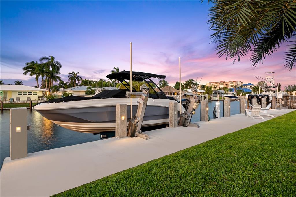 No expense spared in this sought after no-HOA Harbor Village home, featuring an 80-ft concrete dock with large turn around basin, power station, lighting, boat lift + raised seawall. Northern-facing lot tucked off main roads w/ in-ground pool (new pump + heater). Professional landscaping + covered back patio w/ new pavers, fencing + lighting. 2-car garage + circular drive. New roof, impact windows / doors, PVC piping + paint! Inside, views of pool, canal + Intracoastal throughout. Custom window treatments + updated kitchen w/ Dynamic Designs Cabinetry, stainless steel appliances + quartz counters. Two primary suites, each w/ Intracoastal vistas + ensuite baths. Final bath is cabana-style. Minutes to the beach, restaurants, shopping I-95 + much more. Book your showing ASAP!