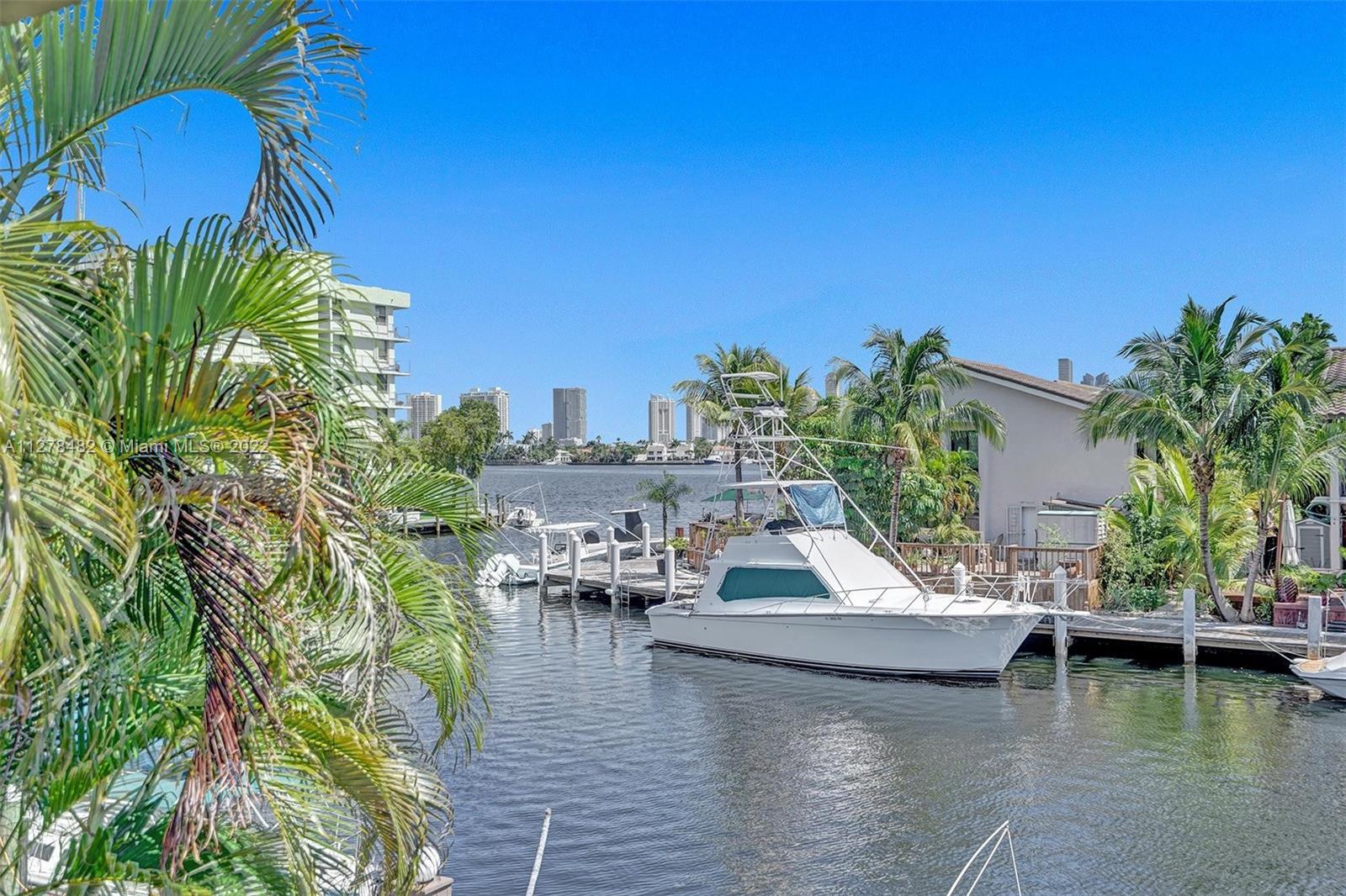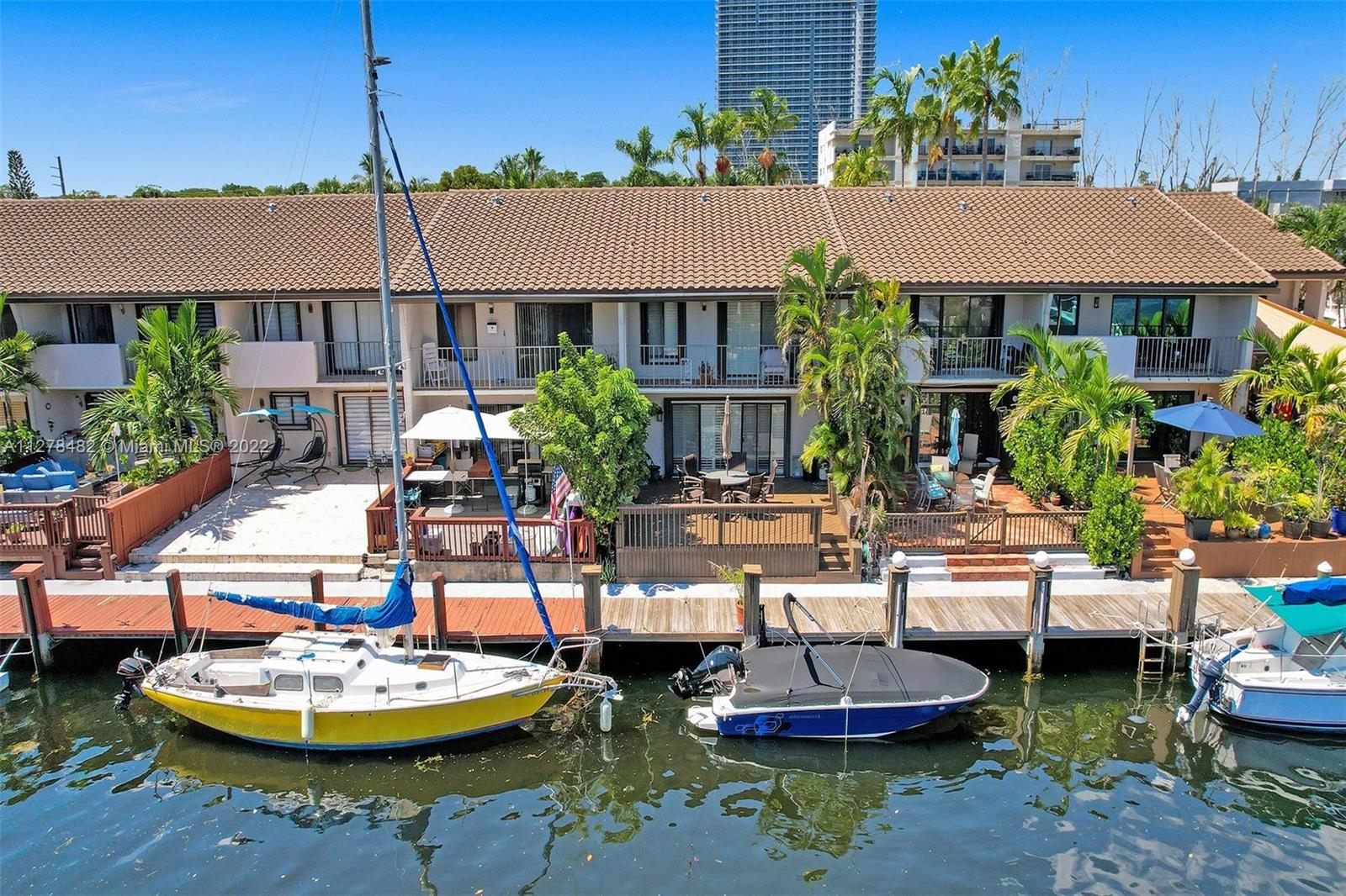 Eastern Shores - One of the most stunning remodeled waterfront townhomes. 23 Feet dock space included! 3 bedrooms / 2 1/2 bathrooms - 1590 square feet. Some of the exceptional features include: Fabulous new top of the line kitchen, upgraded lighting system, new sleek modern tile floors through out, top of the line built in closets, all new high end doors, new deck/dock accommodates boat of up to 23 feet. Ocean Access / No fixed bridges to Ocean. Fabulous open water view. Community is in great condition - new barrel tile roofs. Walking distance to restaurants, shoppes, Ocean and Oleta Park. Low monthly maintenance of $549 per month!