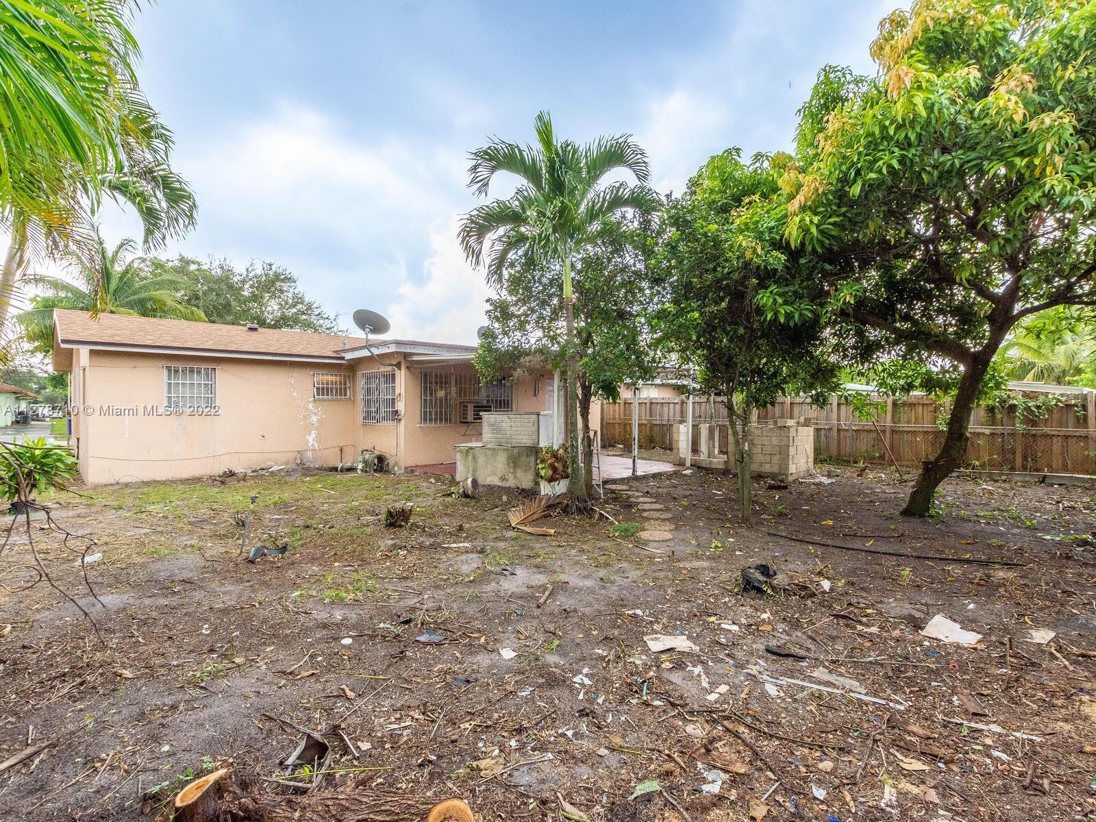 Add your own touches and finishes to this cozy 2 bed, 1 bath Single Family Home with a 1 car garage. New roof installed 2021. Very close to Hard Rock Stadium, Hard Rock Hotel and Casino, 441, i95, and the Florida Turnpike. Plenty of room for a pool or a large backyard entertaining area. Covered rear patio perfect for grilling or relaxing. Coconut tree in the front yard.