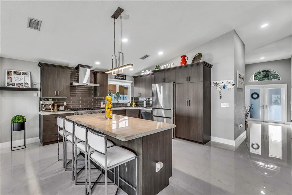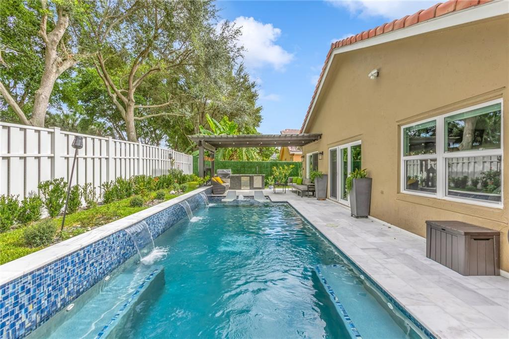 MODERN, ELEGANT, & COZY, THIS HOME HAS IT ALL, BOASTING COMPLETE INTERIOR UPGRADED REMODEL SITUATED IN PRIME LOCATION WITH NEARBY HIGHWAYS, SHOPPING, & ENTERTAINMENT. HOME'S INTERIOR FEATURES OPEN QUARTZITE KITCHEN, HUGE CENTER ISLAND, SS APPLIANCES, PROFESSIONAL GAS STOVE, 32 INCH PORCELINE TILE THROUGHOUT, CUSTOM SPA-LIKE BATHROOMS, LIVING ROOM ELECTRIC BLINDS, CUSTOM DOORS & CABINETRY THOUGHOUT, AND MANY MORE. OUTSIDE AWAITS YOUR TRANQUIL OASIS FEATURING LUXURY MODERN SMART POOL WITH 3 WATERFALLS & 12 PERSON IN-POOL SPA WITH GLASS TILED SUN DECK, COVERED PERGOLA, BRAND NEW OUTDOOR KITCHEN, & NEW LANDSCAPING & LIGHTING. COMPLETE IMPACT WINDOWS, SLIDERS, & FRONT DOORS ADD PROTECTION & SECURITY. NEW SPRINKLER SYSTEM, GUTTERS THROUGHOUT, & PVC PRIVACY FENCE ALSO ADDED. TRULY MOVE-IN READY