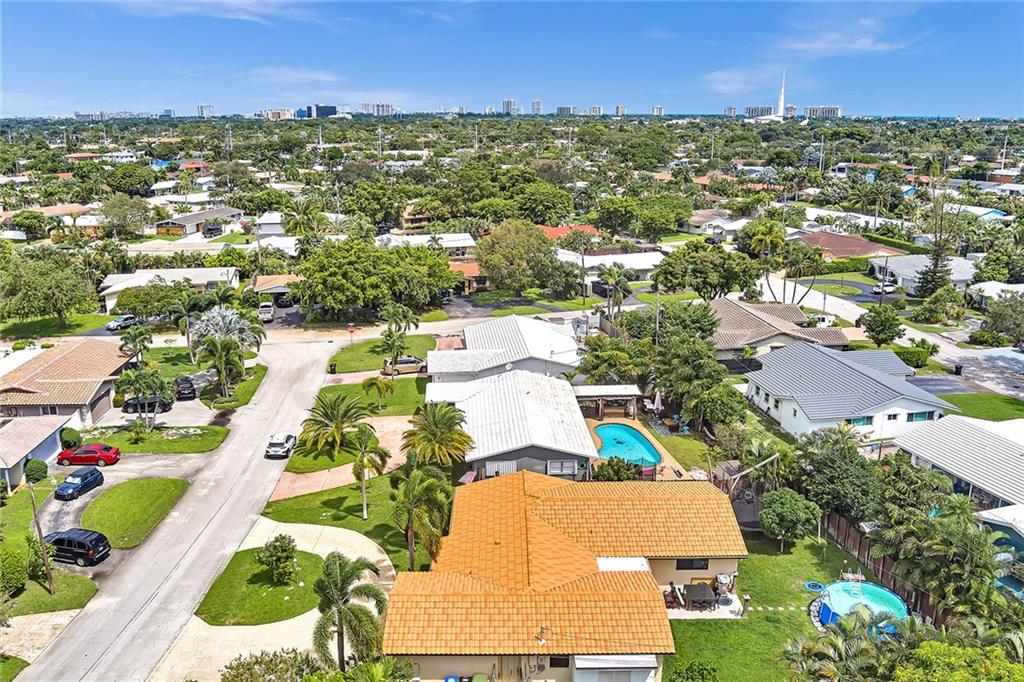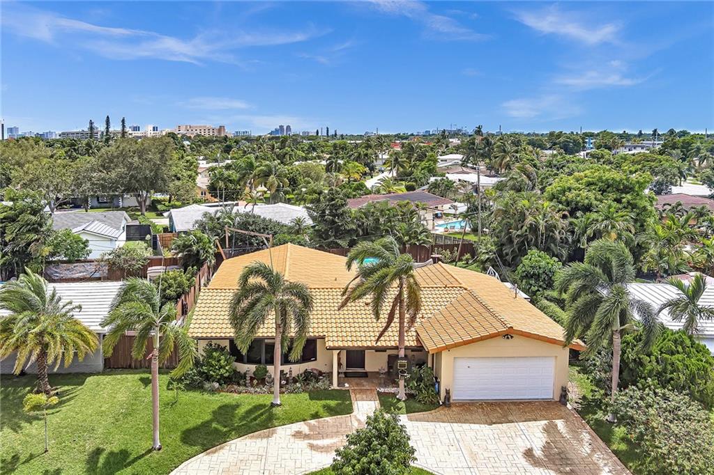 Rare shot to buy into a highly desirable neighborhood on a tranquil street. The widened circular driveway provides ample parking. Walk right into a bright, large & open interior space that will inspire your dream home designs. 3 Bedrooms, 2 Baths, a huge living room, formal dining space, all give the interior a HUGE feel. This home has great bones! Former Florida room has been closed in & provides a den/access to Very large backyard with privacy fencing. Ceramic & luxury vinyl flooring. True Spanish S-Tile roof. Home has large square footage, with hurricane impact windows, newer electrical panel, water filtration system,& well maintained 4 ton A/C. Priced to sell and located just 2 miles from the beach, walking distance to "A" rated school, near I95,& 15 minutes to FT. Lauderdale airport.