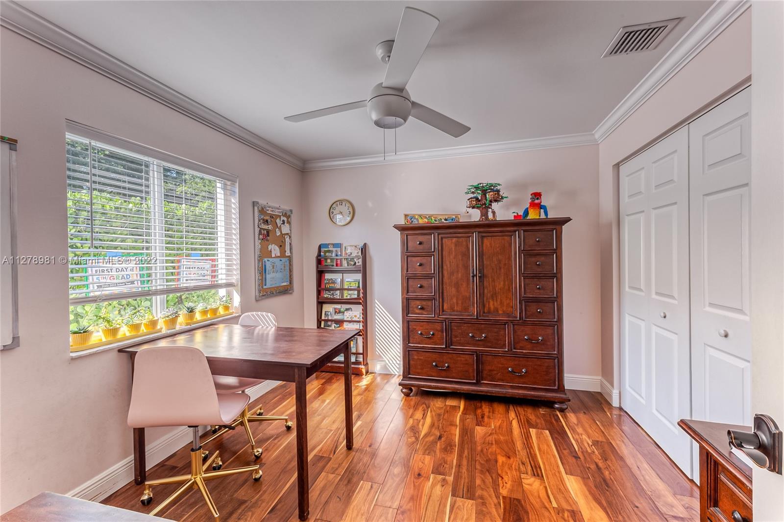 Exquisite and Cozy Home in Savanna with designer finishes throughout and over $100K in upgrades. New roof Sept 2022, A/C 2017. Recently painted inside and out, Acacia hardwood floors, new crown molding, and baseboards throughout, new electrical outlets and LED spotlights, new cordless blinds. Well-maintained kitchen with white shaker kitchen cabinets, quartz countertops, and new smart stainless-steel appliances, high-efficiency washer and dryer. Chicago brick driveway and back patio, 2 Tesla charging outlets (inside the garage and in the driveway). Easy access to extra storage space in the attic with pull-down ladder. Plenty of room to spread out and relax in the lushly landscaped private backyard with play set included. This home has been loved and meticulously maintained!