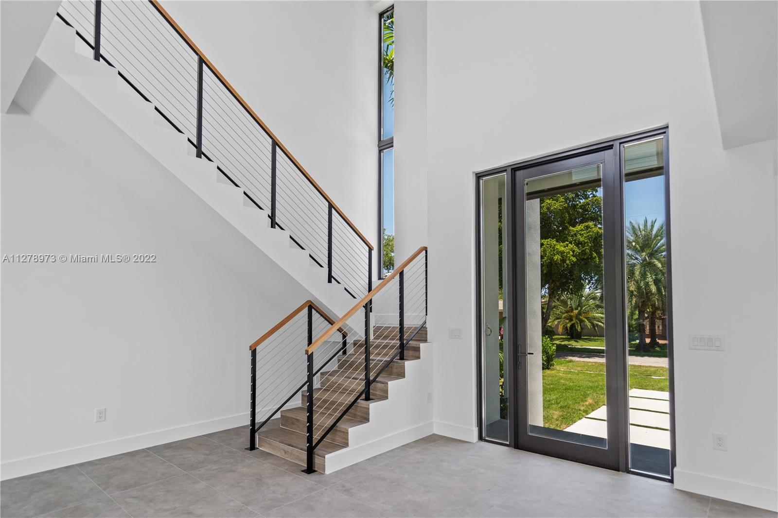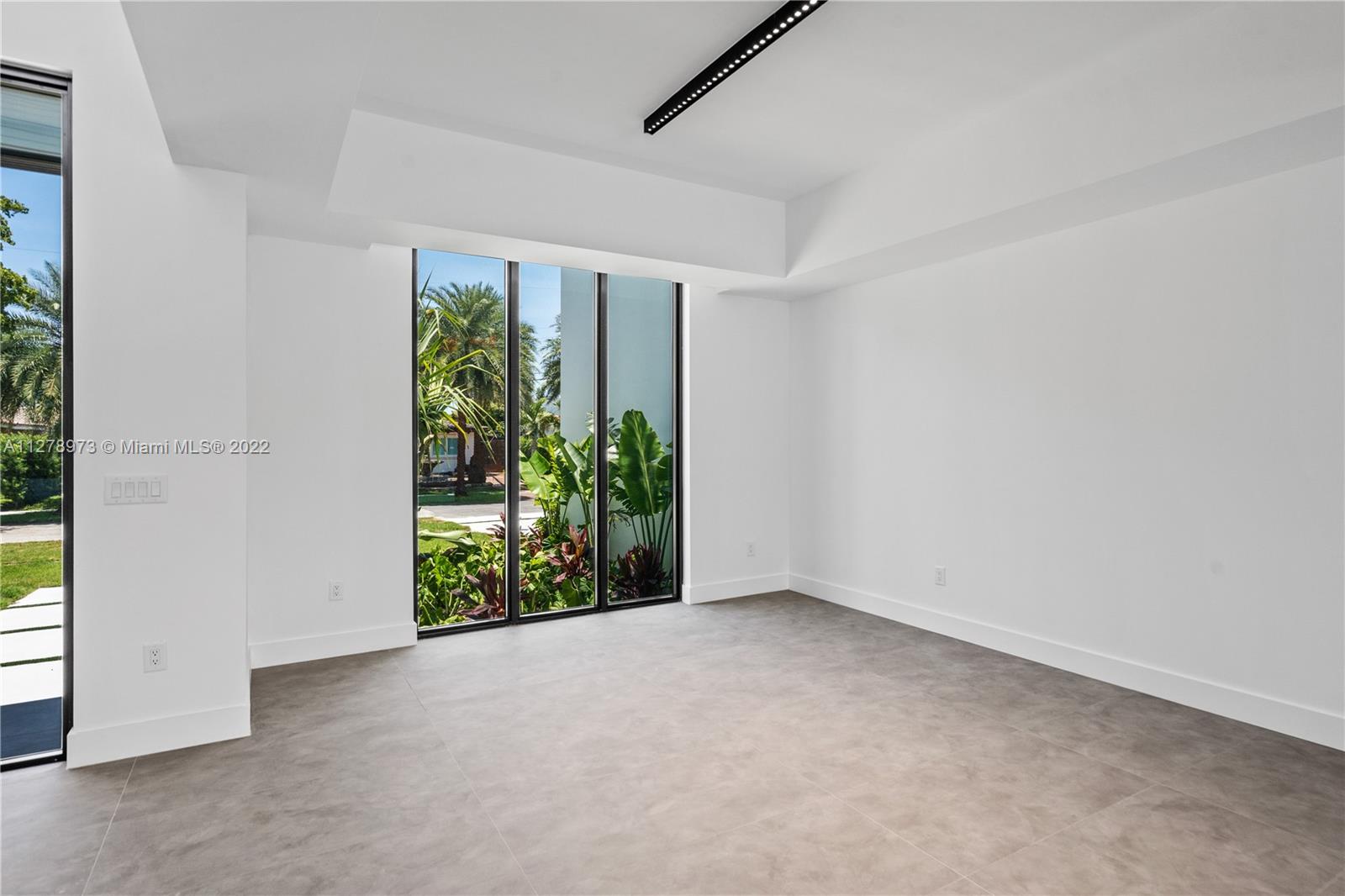 Just finished! Move in Immediately. NEW Modern 2 Story Waterfront Pool Home w/Ocean access, No bridges to Bay. 5 bed & 5 Baths (5th room set us as den/office/upstairs sitting area) on quiet cul-de-sac street. 1st and 2nd floors are solid concrete. Features: New synthetic Dock with 75 ft on the water, Quick ocean access! Water views from many rooms. Open floor plan with soaring high ceilings, impact/Hurricane rated glass and 10ft floor to ceiling glass, natural gas, and 2 car garage. Primary bedroom features huge balcony overlooking the pool and water. All closets built out! New Heated pool with inlayed waterfall Jacuzzi. Located in 24 hr guard gated Islands of Keystone Point, Miami, Florida.