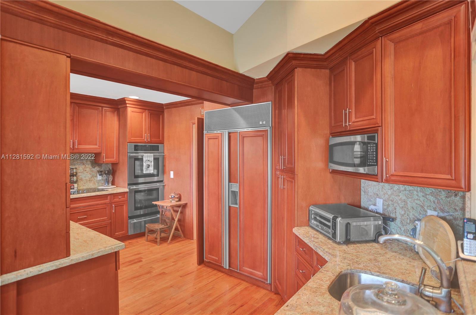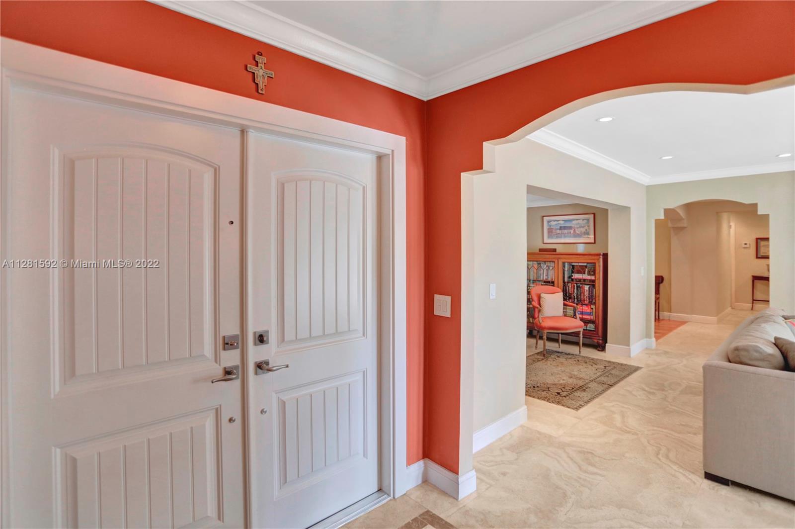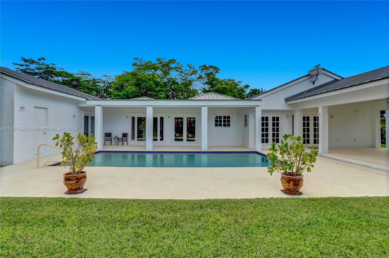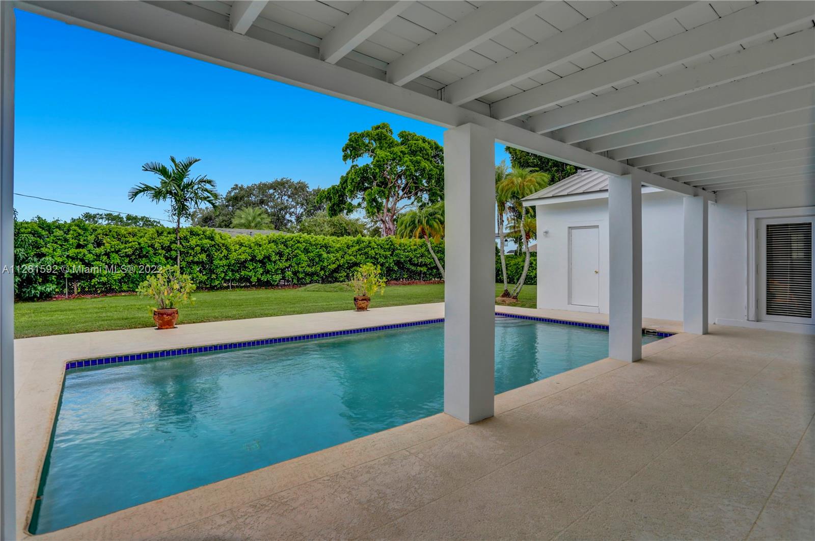 Drive down the tree-lined street in a prime section of Pinecrest to this beautiful home. This home has a wonderful floor plan with the kitchen open to the large family room. The family room has high, vaulted ceilings. There are lovely architectural details in the interior. The backyard is very private and features a large patio and a large, covered area that would be perfect for an outdoor kitchen. There is a sparkling pool and fenced yard. Home is located on a quiet corner lot with double-door gate on the side for ease of access to park a boat.