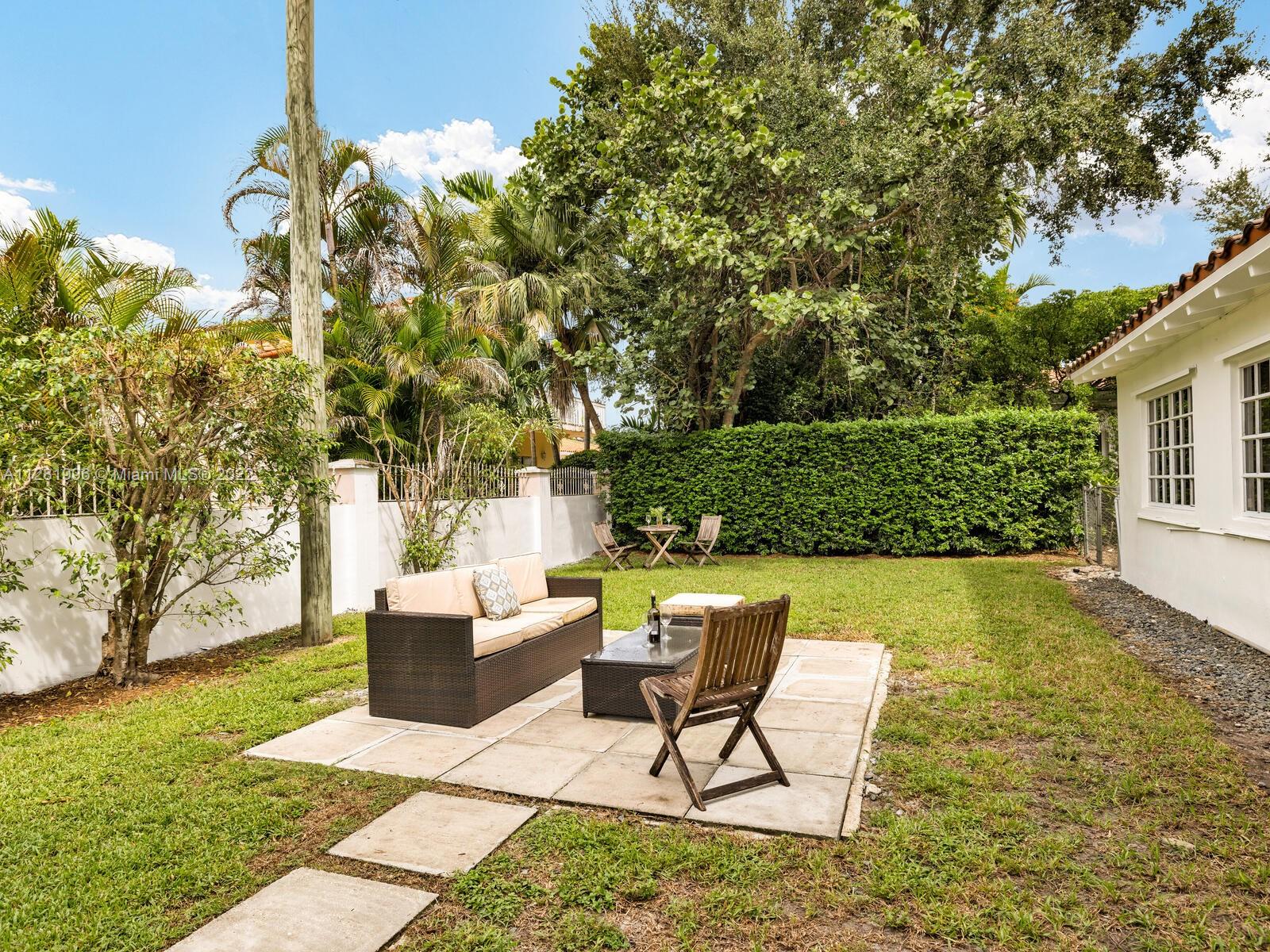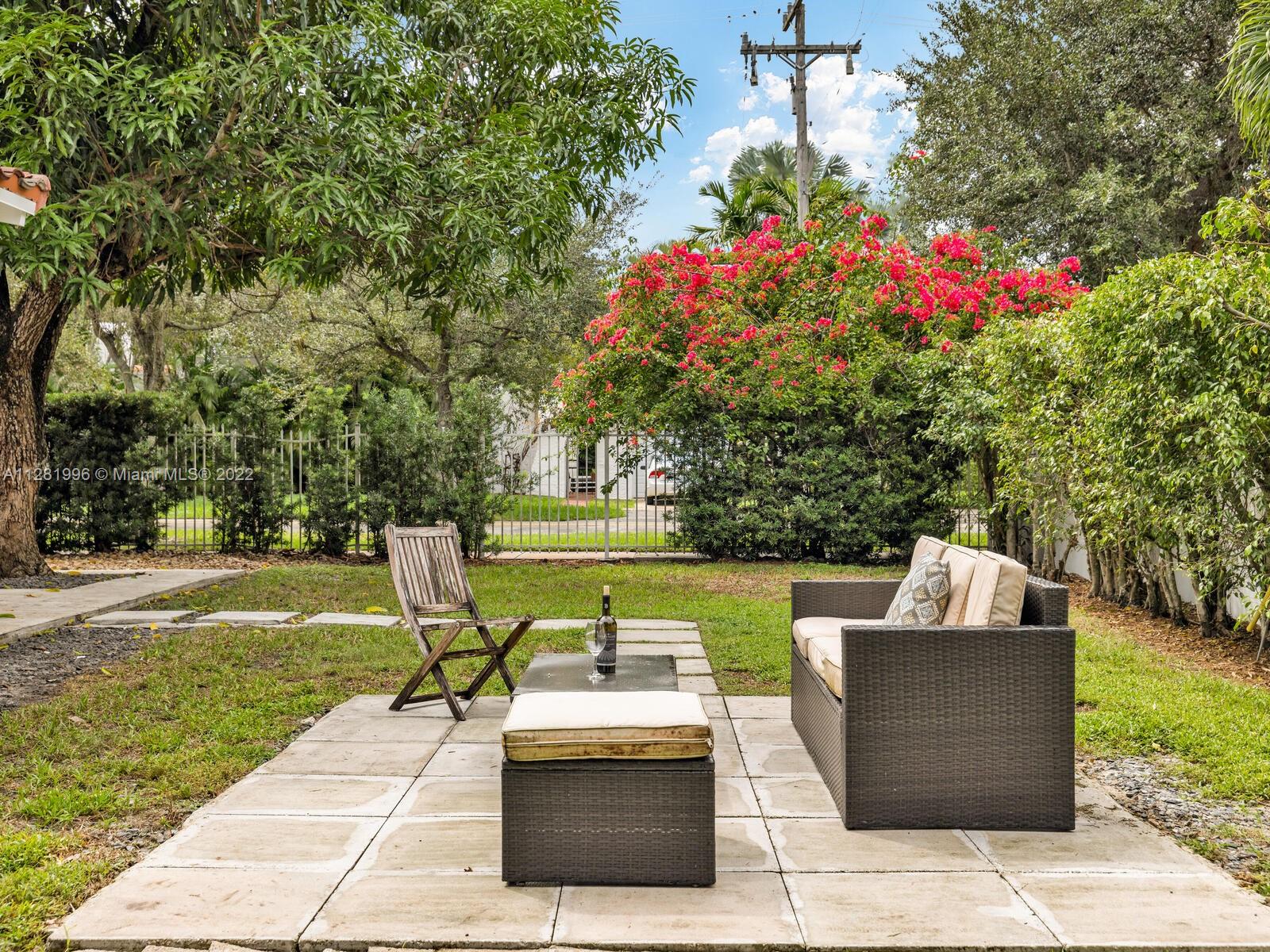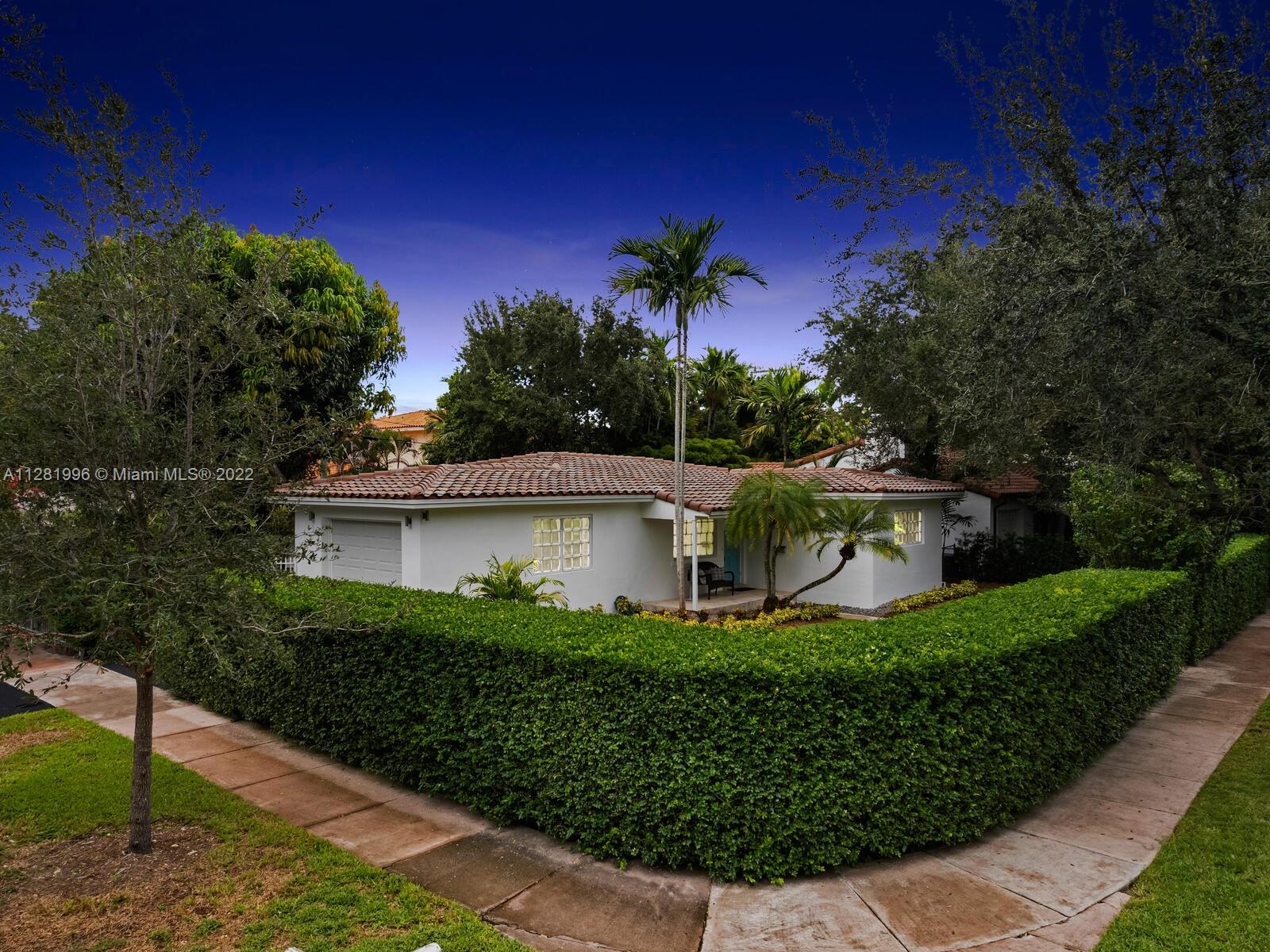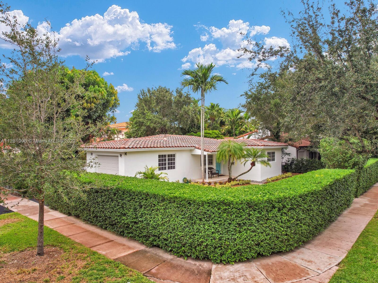 Welcome to Casa Gardenia! The wonderful fragrance of blooming gardenias greets you to this delightful updated Coral Gables home on a lushly landscaped corner lot with welcoming front porch, so perfect for morning coffee. Inside, enjoy spacious and flowing living that opens to vaulted room—that’s so flexible-- with dining, media and office areas and lots of natural light. Plus, opens to updated kitchen. So easy, you can design how you want to live! Fire up the barbecue and entertain family and friends in your private, landscaped and gated rear gardens. Unwind in the main suite retreat and bath with double closets or the comfortable guest room, next to other updated bath. Enclosed garage. Fabulous location—close to all the Gables great restaurants and shopping. Come smell the gardenias!