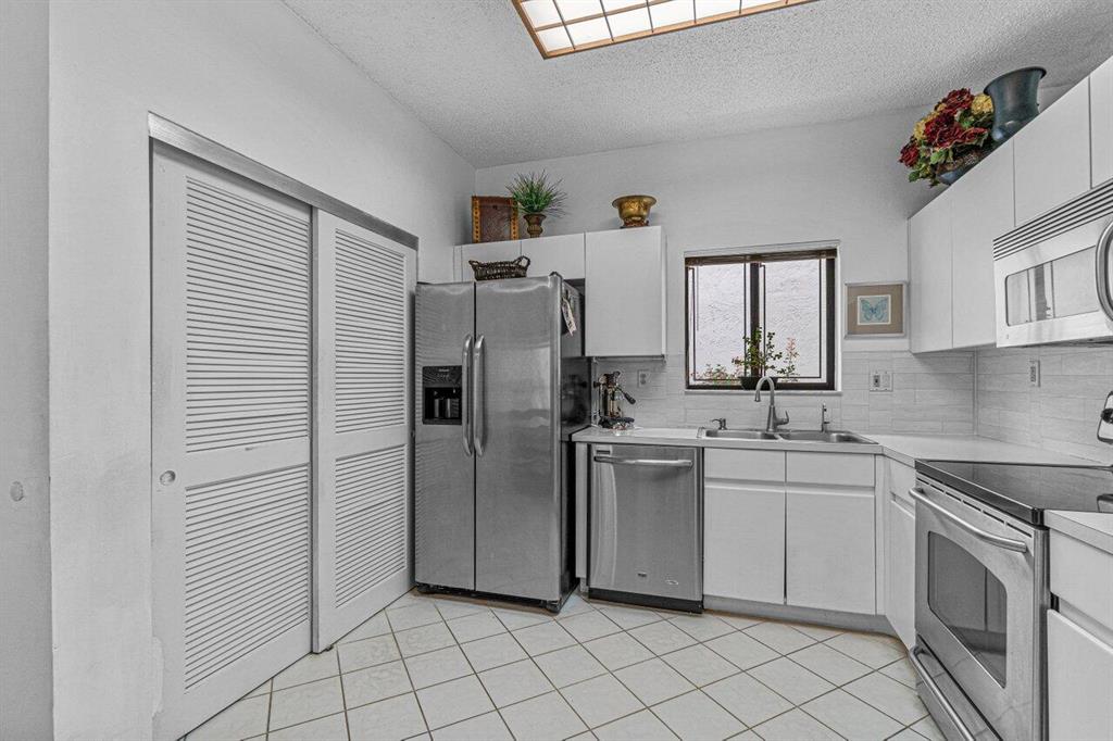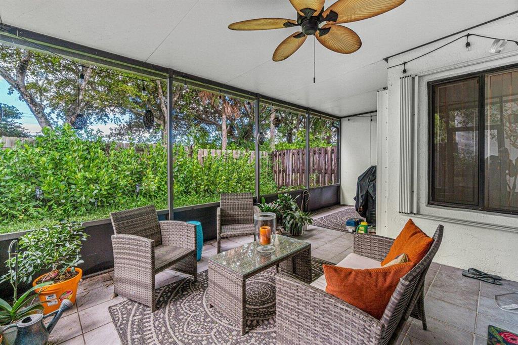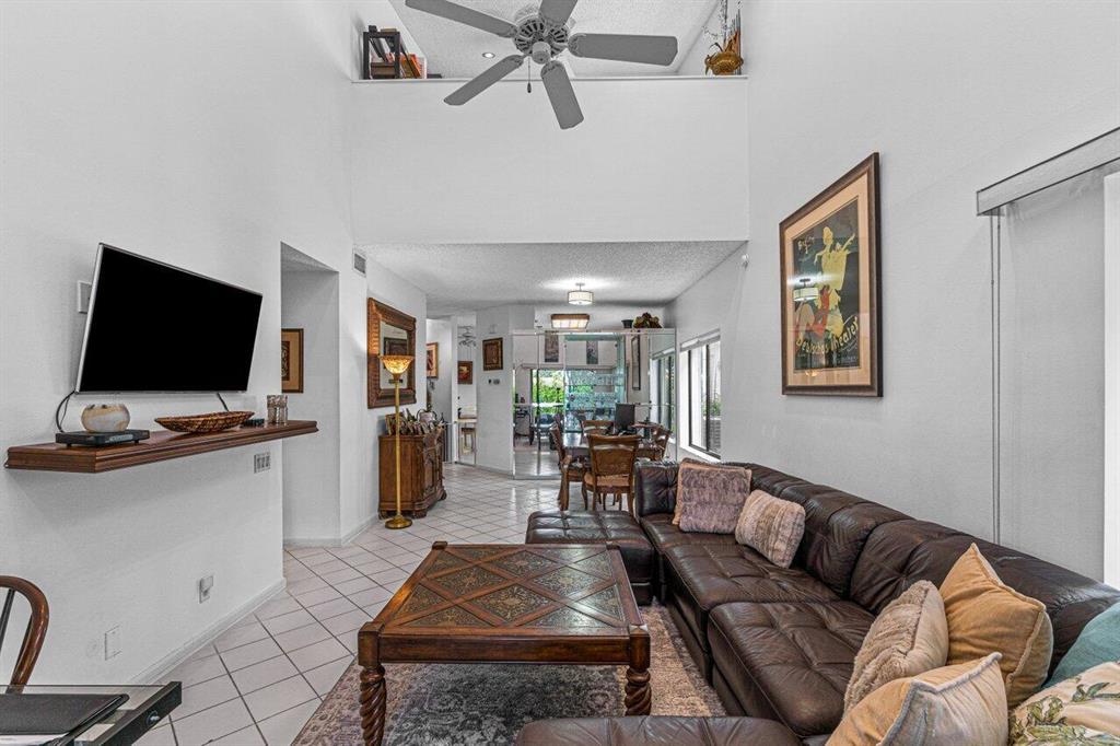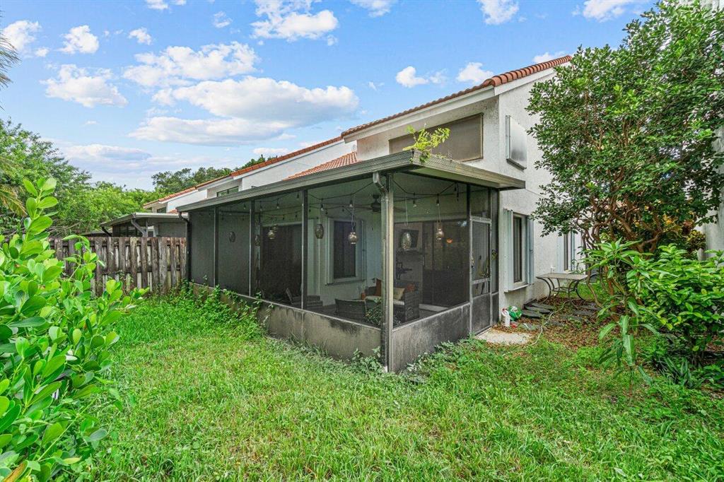 Charming two story home offers dual suites plus loft/3rd bedroom. Located on quiet street w/no back neighbors. East exposure brings natural light throughout this bright home. Tile in living area. White eat-in kitchen w/updated appliances. Primary down offers built-in murphy bed, laminate floors, walk-in closet & sliders to patio. Primary up offers walk-in closet, dual sinks, vaulted ceilings, separate tub & shower. Third bedroom currently open loft w/walk-in closet & can be walled in. Screened & tiled patio opens to private greenspace. Best Town Center location. Walk to Publix, Walgreens/CVS, shops, restaurants & more. 24 hour manned gate. Two small pets or one large. Close to the best beaches, A rated schools , I95 & Turnpike. Roof 2008. Accordian shutters! 2CG. See broker remarks.