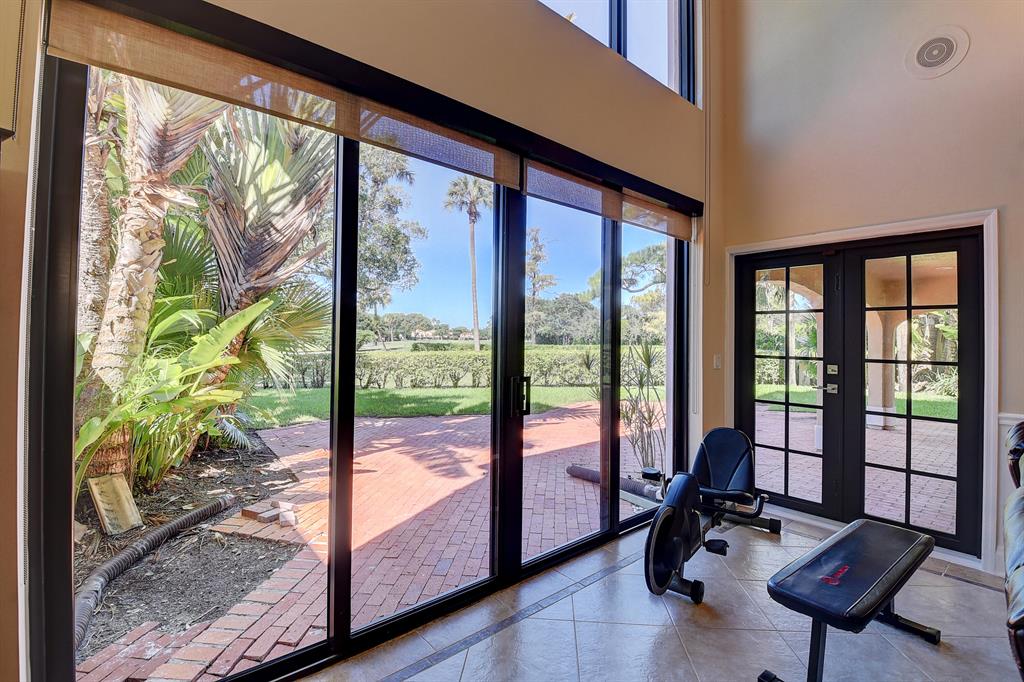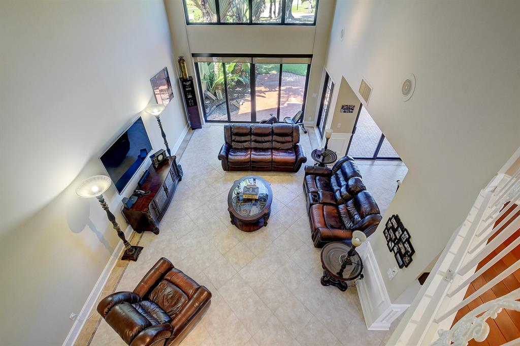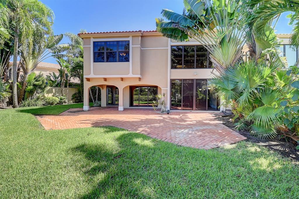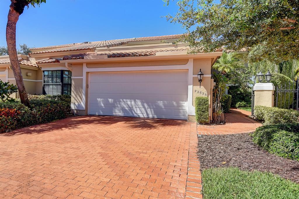 ONE OF THE BEST VALUES IN BOCA POINTE. Custom updated 2700+ sq ft 3/3 townhome with brand-new impact glass. Replaced windows, front door, sky lights and garage door. Natural light flows in from double story windows in living room. Kitchen and baths redone. Long driveway. Private backyard with covered area and extended brick patio. Western exposure has sunset and golf course views. Upstairs has 2 master bedrooms with private baths and walk in closets plus bedroom and full bath down. Smooth ceilings, 2 wine coolers, new frig, washer and dryer and both A/C's replaced, gutters replaced, 1 flat roof and tile roof replaced 2012 and 2nd flat roof replaced 2020, wood floors on stairs and upper level. Master bedroom TV included. 65'' 4K Panasonic TV with Bose sound system and kitchen TV negotiable.