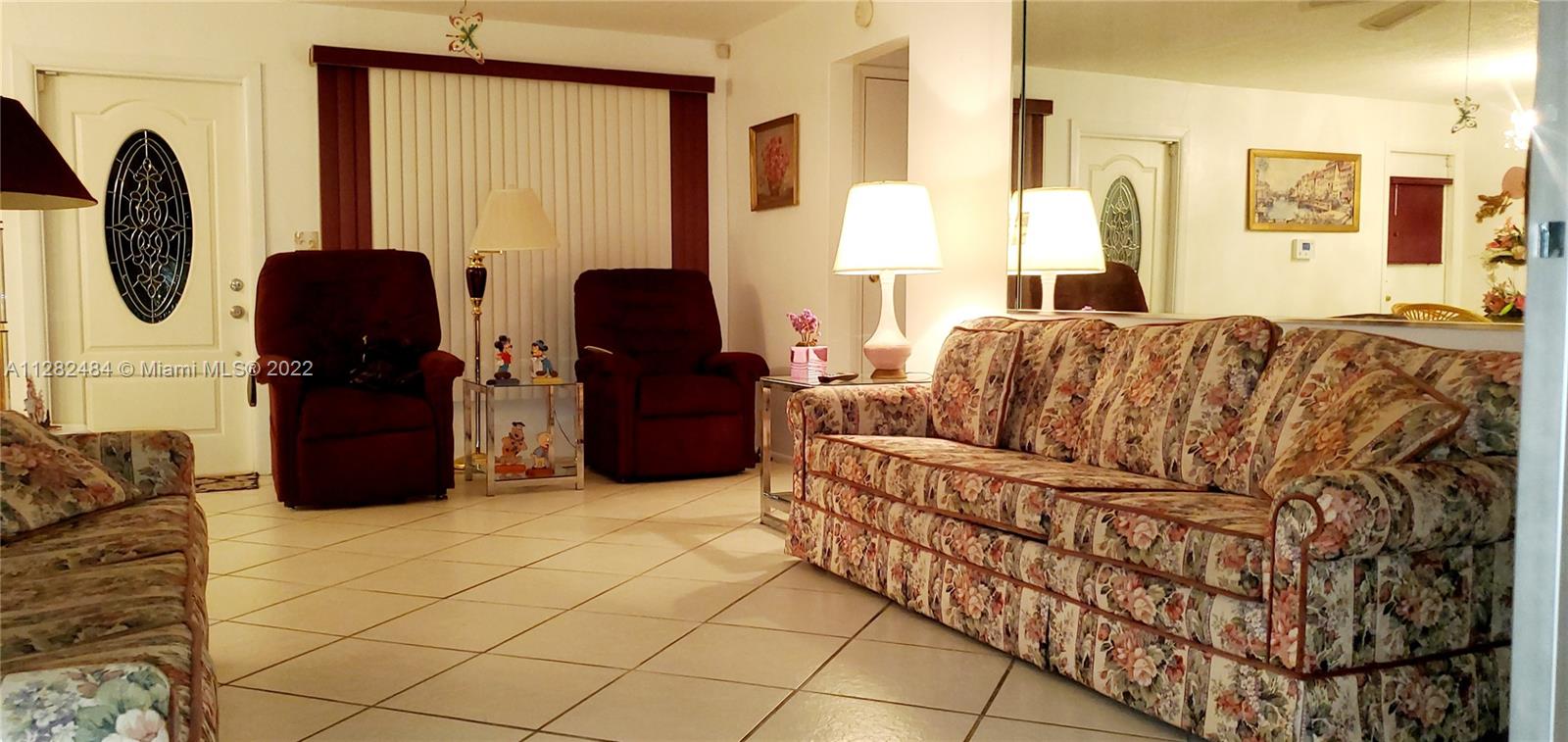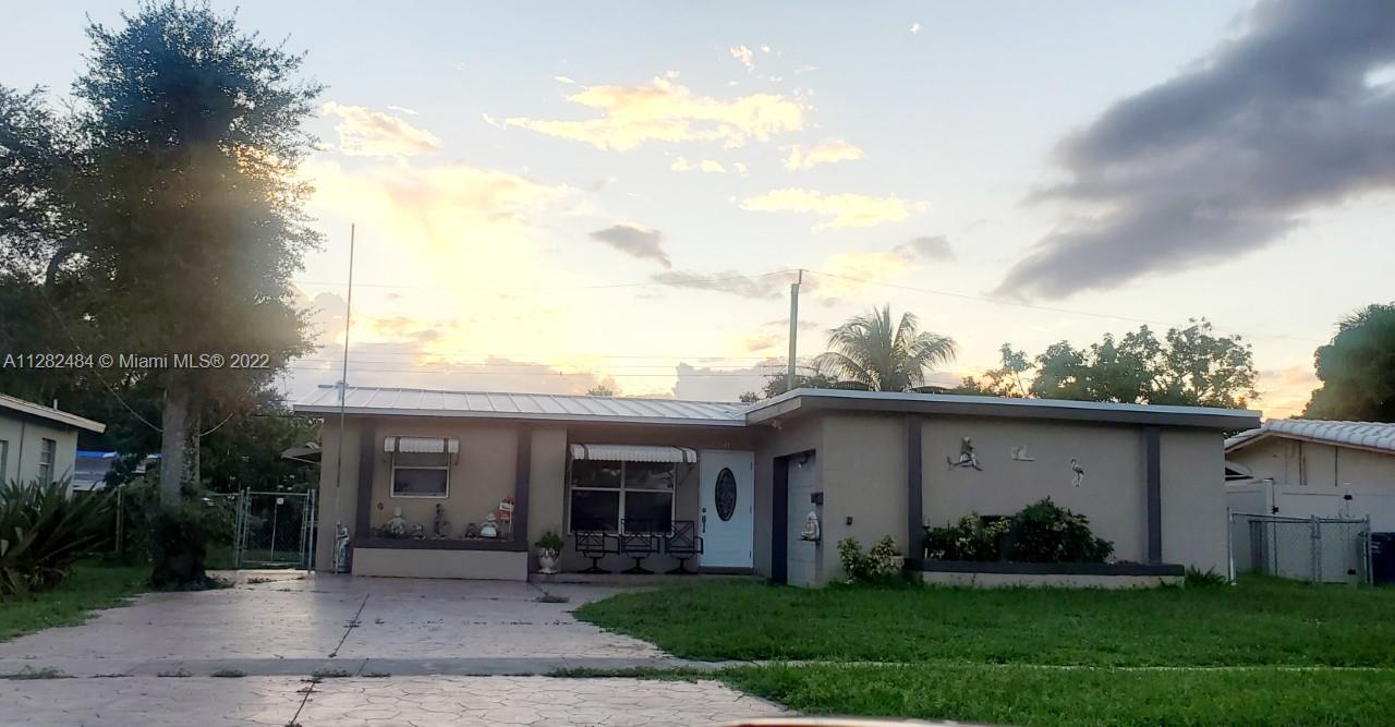REDUCED NO HOA. This well maintained and cozy 2 bedrooms/2 baths home is nestled in Hollywood, and features a new 2022 aluminum roof, one car garage, no carpet, tiles in the living areas, impact widows in the family room. The Kitchen has beautiful white cabinets, granite countertops and stainless steel appliances. Master Bedroom has 2 closets. The oversized backyard is fully fenced, has several fruit trees such as mangos, star fruits etc. Septic tank. Come see this property. It will not last. Ready to move in!