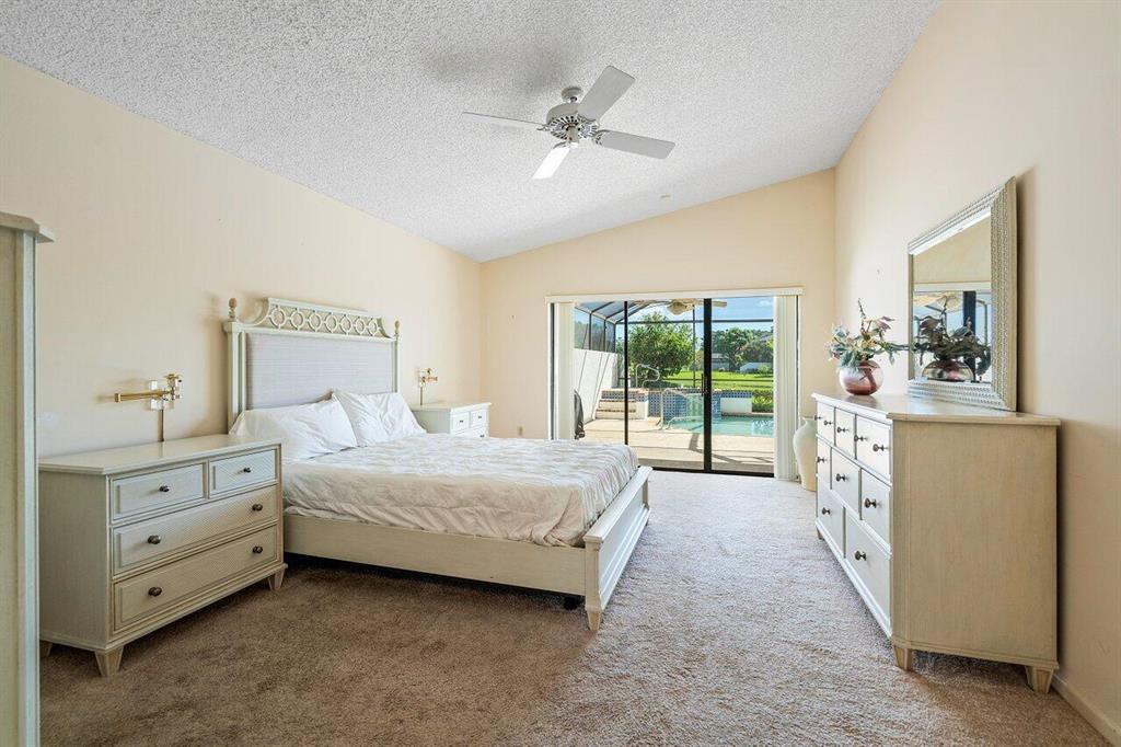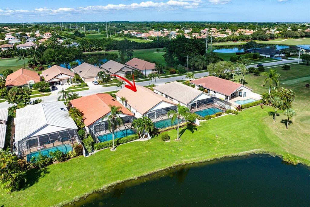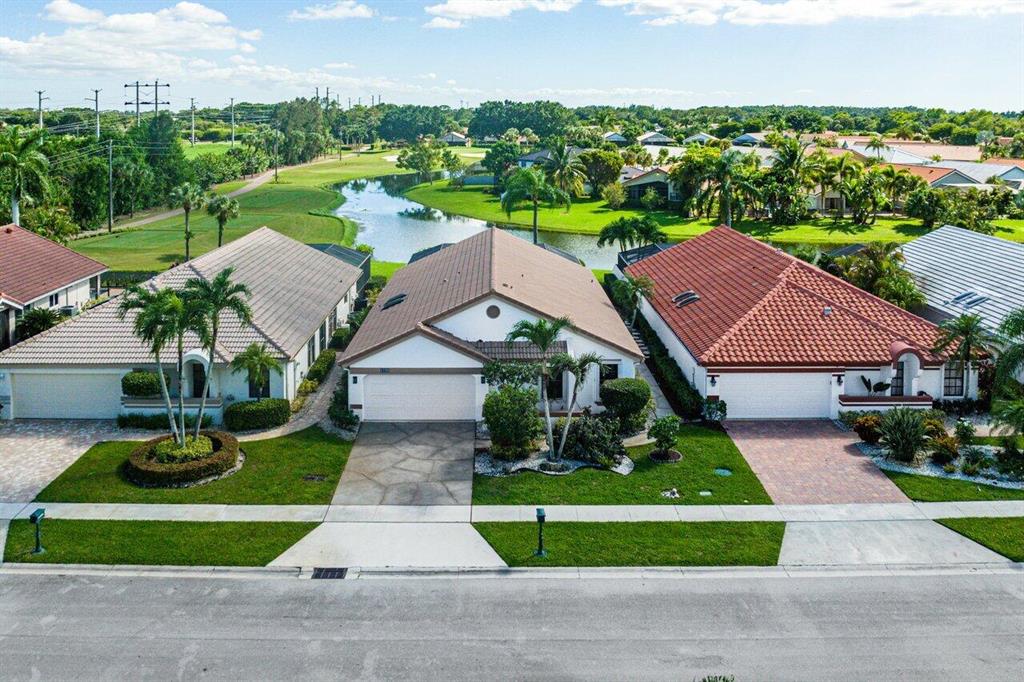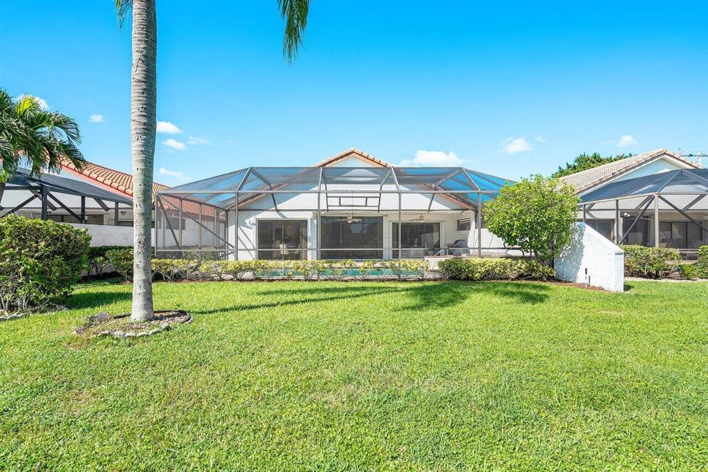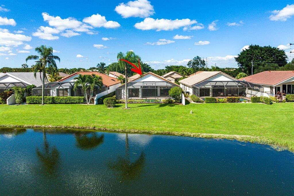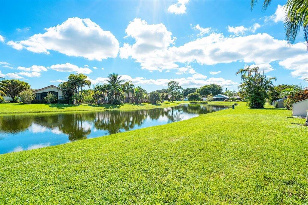 Spectacular WATER VIEW from this well maintained home with screened in pool and patio. Features of this 2 bedroom/2 bath split floor plan include a den/office that can easily be converted into a 3rd bedroom. Boca Woods is an all age Country Club Community which offers resort style amenities including two 18 hole championship golf courses, Har Tru tennis courts, pickleball, bocce ball, state of the art fitness center, spa, game room and fine dining. Mandatory Membership of $75,000 is due 10 days prior to closing. Annual dues is $17,430+ tax. A service charge of $107/month as BWCC is a non tipping club.