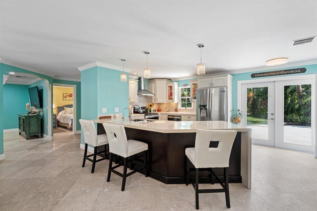 SELLER READY TO SELL *BRING ALL OFFERS* Coastal themed house sitting on a lush 1.2 acres was completely redone & customized from top to bottom. Upon entering you'll step right into an open concept living area which the kitchen draws you right in. Quartz waterfall countertop, custom cabinetry (including an out of this world pantry), & high end stainless steel appliances are just a few of the features here. Master suite features wood floors, a huge custom closet and an ensuite that includes dual sinks, spa tub, and a separate shower. The 2 additional bedrooms and full baths have also been completely refinished. The quality of craftsmanship cannot be overstated it is second to none.The exterior features a tiki bar with full electric and plumbing and a variety of fruit trees.Paved road. No HOA