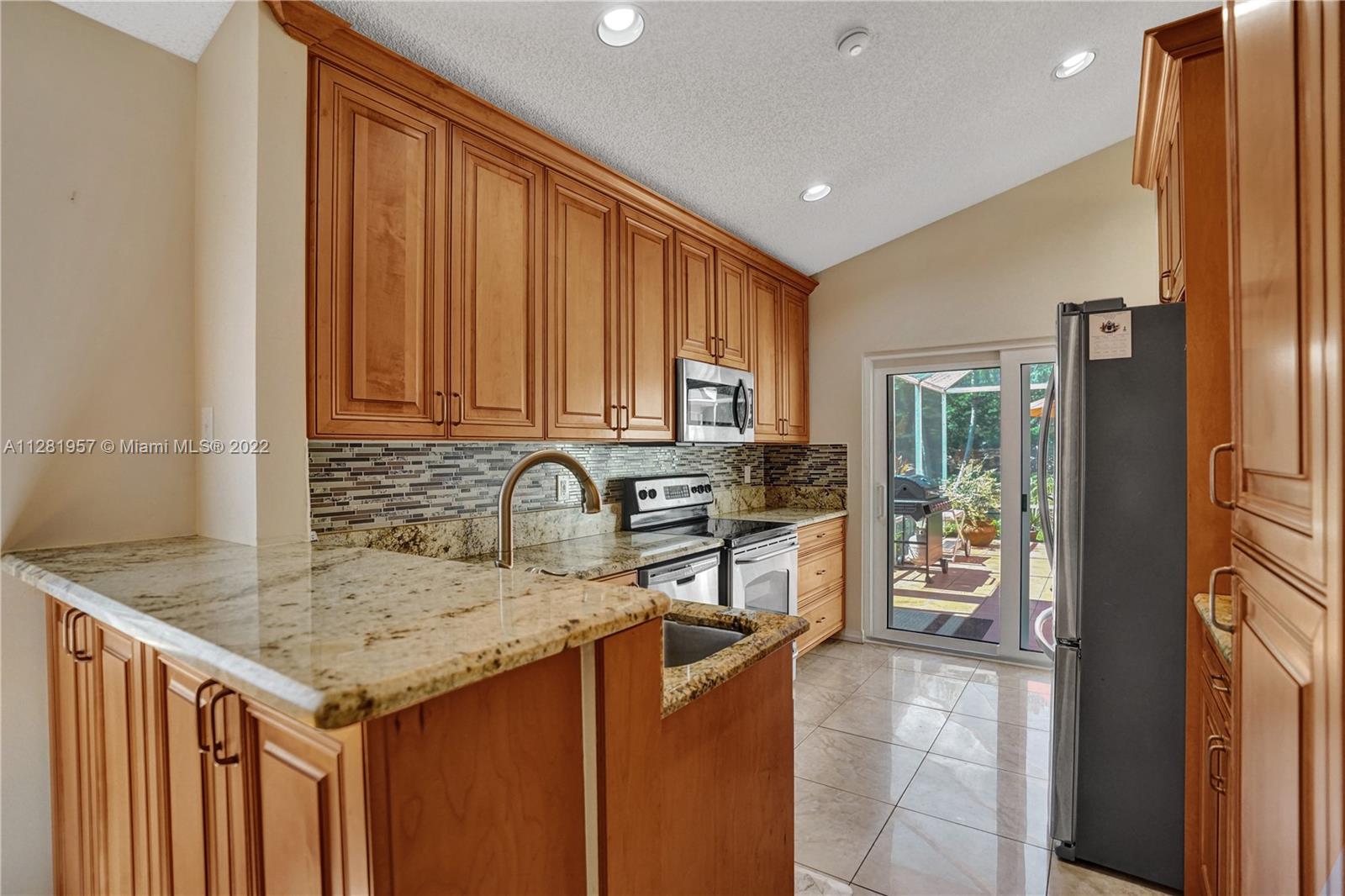 This comfortable waterfront home features a New Roof, New high grade Impact Doors + Remodeled Bathrooms. This home's versatile interior offers a fantastic & spacious split bedroom layout, with high vaulted ceilings, engineered wood & tile flooring + convenient interior full size laundry closet. The custom wood kitchen features storage pull-outs, stone counters & stainless appliance package. Relax in your totally screened and very private patio overlooking a serene lake & lush greenery, the ideal spot for nature gazing. Bonus features: New exterior paint, New Rain Gutters, New blinds, Updated A/C & hybrid water heater, lake-fed irrigation system & accordion shutters. The Lakes is centrally located, offering gated access, pool & play areas, easy access to parks, shopping & A+ Schools.