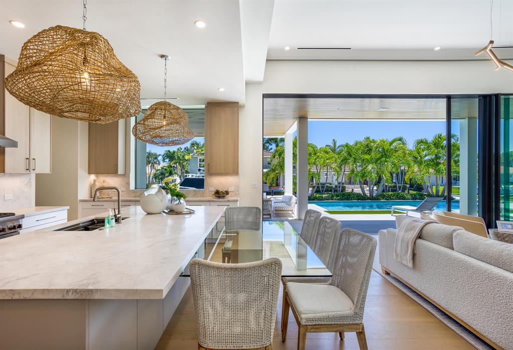 New Midcentury Modern Deepwater Estate... Experience Palm Springs meets Boca Raton in this new striking single-level waterfront estate encased in stone, porcelain, glass, handsome blonde wood and sited on 121+/- feet of Deepwater by award-winning JSD Builders, architect Gregory Anderson, and interior furnishings by Danielle DePerro. Outdoor entertaining is enjoyed at the expansive lanai with a summer kitchen, cabana, southeast facing resort-style pool with spa and sun shelf. Prime 101+/- feet of boat dockage. Other amenities include Club room with bar, office/study, and 4-bay garage for the connoisseur. 4-bay garage can be converted to 5th bedroom with bath and closet. Shown by appointment only.