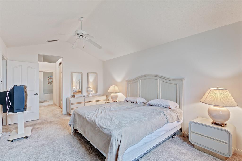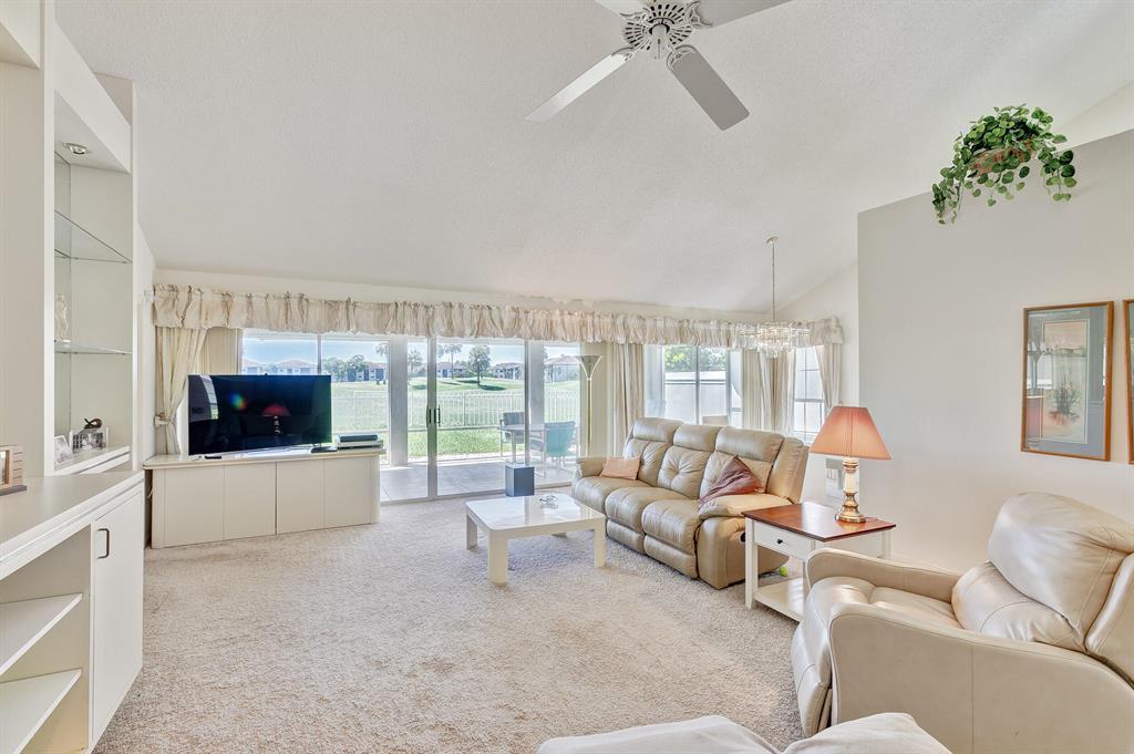 SPECTACULAR GOLF COURSE VIEW!! Enjoy Florida living in the prestigious golf course community of Bear Island! This premium CBS Divosta-built home has panoramic golf course views, private fenced backyard, and expansive covered screened patio. Tons of natural light surround this spacious split floor plan. With 3 bedrooms, 2 baths, and nearly 2,000 SF under air, this home boasts soaring vaulted ceilings, built-in shelves, separate dining room and eat-in kitchen breakfast area. Double sets of sliders showcase your incredible golf course views and sizeable backyard (plenty of room to add a pool)! Generous master suite features 2 large closets and sliding glass doors leading out to covered patio. Master bathroom equipped with dual sinks, separate shower and Roman tub.