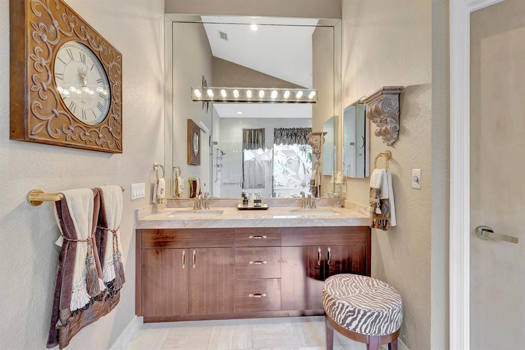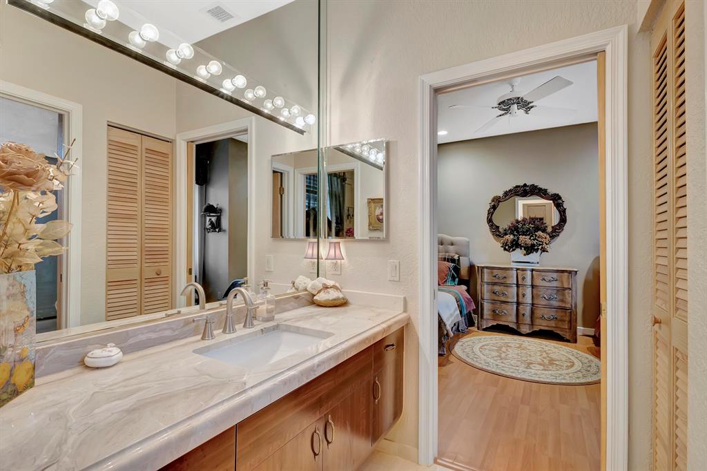 Elegantly designed Stonebridge home overlooking the beautiful golf course..This sprawling one story home has impact windows(on all but 3 windows). Grand living room welcomes you right away with soaring ceilings and open entertaining area.. The primary bedroom is separated from the rest of the bedroom to afford you and your guests the most privacy.. Enormous fitted closet has a place for everything.. Enjoy your own morning primp area away from the primary bathroom .. The kitchen has lots of wood cabinetry, granite counters and is open to the spacious family room . Lots of light, and a total enjoyment of back area from all the doors and windows looking out over the pool and golf course.. screened and open lanai to please everyone..