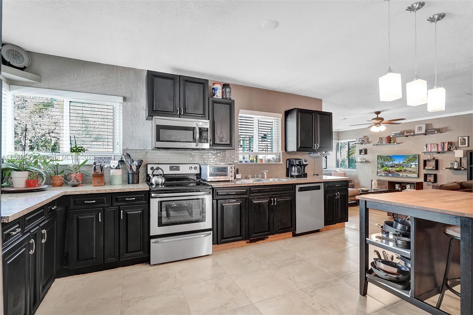 OVERSIZED LOT IN A GREAT LOCATION IN HOLLYWOOD! THIS 4 BEDROOM, 2 BATH HOME OFFERS A CIRCULAR DRIVE FOR AMPLE PARKING, LOTS OF WINDOWS TO CREATE AN OPEN AND BRIGHT FEEL, SPACIOUS OPEN KITCHEN FEATURING DARK BROWN CABINETRY, GRANITE COUNTERTOPS, SS APPLIANCES, AND GLASS TILE BACKSPLASH. THE OVERSIZED FAMILY ROOM FEATURES EXPOSED WOOD BEAMS. THE PRIMARY SUITE FEATURES AN ENSUITE BATHROOM WITH STANDING SHOWER. ADDITIONAL FEATURES INCLUDE IMPACT GLASS, NEW A/C, AN ADDITIONAL ROOM WITH DOUBLE DOORS THAT CAN BE USED FOR STORAGE, LAUNDRY ROOM, ELECTRIC WATER HEATER, ATTIC SPACE, AND A GAZEBO WITH BUILT IN BAR IN THE BACKYARD PERFECT FOR ENTERTAINING. LOCATED JUST MINUTES FROM DOWNTOWN HOLLYWOOD, THE BEACH, FTL AIRPORT, AVENTURA MALL, I95 AND MORE!