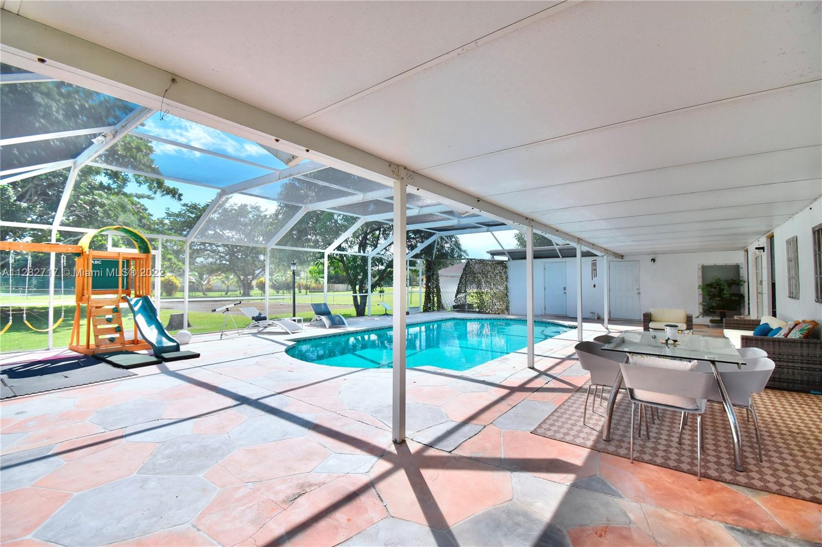 Exclusive - Private - Secluded 1.27 Acres "Cul De Sac" Lot, located in the desirable Sunshine Acres in Davie. 5 Beds / 4 Baths, Plus Den. An 4,330 Sqft2. A/C Estate. Gourmet Kitchen (2017/2022). Outdoor Kitchen (2021). Newer / Updated A/C units (2018-2020). Master Bath (2016). Bath 2 (Jack and Jill ) Fixtures / Tub (2017). Guest Bathroom (2021). Guest Suite Bath (2018). Guest Suite / Pool House Complete (2018). Electrical (Outlets, Fix Wiring, Dimmers,LED Recessed Light) 2016. Indoor Elec. Panel (2020). Hurricane Garage Door (2020). Roof Updated. Updated Well Pump, Pressure Tank & New Timers Full Silicone Covering (2020). New Pool Pump & Full Leak Detection & Repairs (2022). Pergola (2022). Driveway Re-Asphalt (2020). Excellent schools, near shopping, dining, 5 min walk to Park. No HOA.