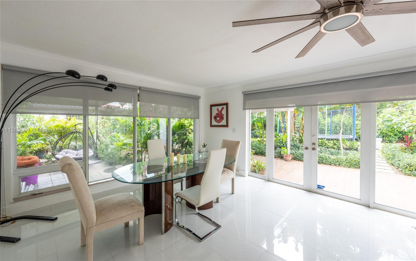 Light and bright just-updated 4/2 in serene and quiet pocket of super-sought-after Miami Shores. Beautiful home with open floor plan and lots of light. Many updates include sleek white porcelain flooring throughout, lots of impact windows uniting interior with tropical garden, new chic white kitchen with quartz counters, and stylish baths. Amazing backyard with outstanding landscaping and plenty of room for a pool. A great value in a super-desirable location.