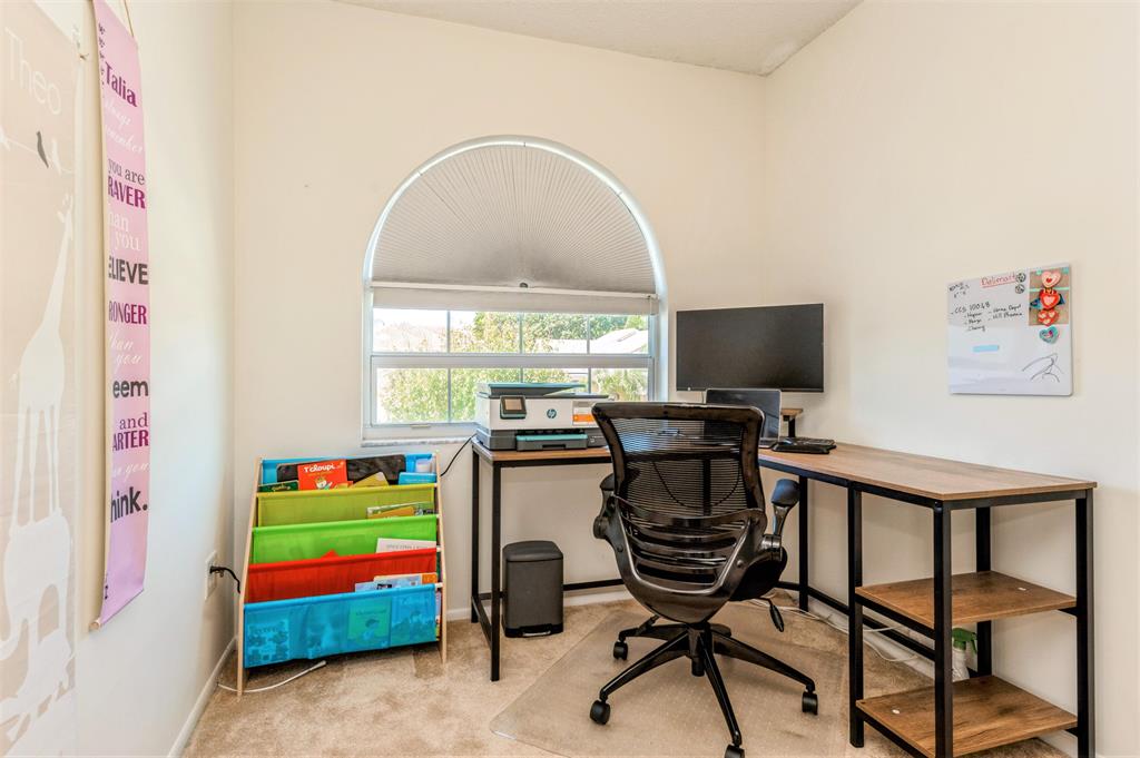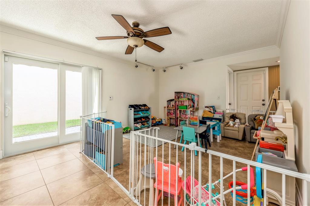 Single-Family 4 bedroom, 2.5 bathroom, 2 car garage with large backyard awaits your new pool. Beautiful kitchen with a peninsula counter which serves the breakfast room & family room. Living room, dining room with beautiful garden views. The 2nd floor features a master bedroom & magnificent ensuite bathroom. Bedrooms 2, 3, & 4 also on the 2nd floor share the updated guest bathroom with shower tub combination. Crown molding throughout & 2nd floor Loft Office. Double pane windows throughout, accordion storm shutters & a burglar alarm for your security. Backyard & side yards feature retractable awnings for an enjoyable shaded outdoor paradise. Garden features an auto sprinkler system. One block to Hammock Elementary School. Low HOA fee & pet friendly community.