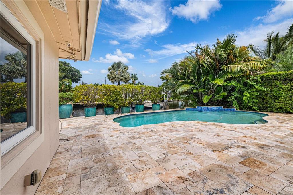Live a dream life on Poinsettia Dr in E. Ft Lauderdale. This resort-style, ocean access, riverfront, pool home features a total of 4 beds 3 baths with a large open living room in a split floor plan. As a bonus, one bed & bath are in a rare, permitted, enclosed-garage, guest house. The separate entrance guest house includes its own TV room & kitchen. Perfect for visitors, in-laws, or potential rental income. This property boasts lush landscaping, large boat dock, Golden-brand boat lift, spacious main kitchen with Sub-Zero Refrigerator, Dacor oven & microwave, and Bosch dishwasher, Turkish marble floors throughout home and guest suite, granite counter tops, tumbled travertine pavers in front & back, irrigation system, updated electrical system, Impact PPG sliders/windows, & Euro Tech Doors.