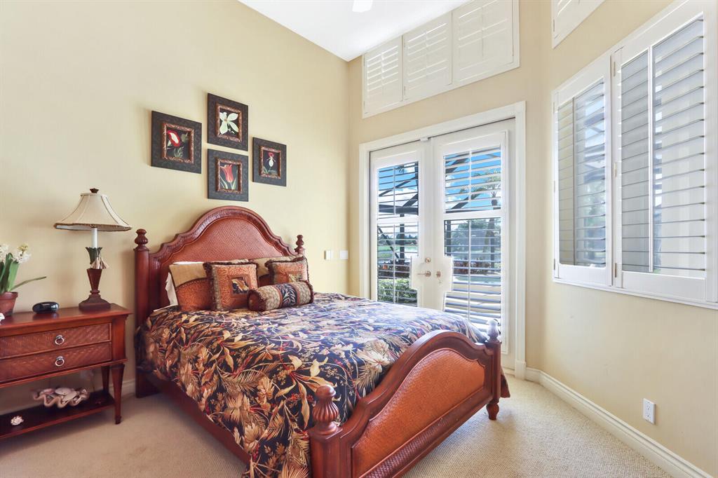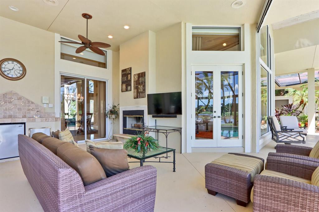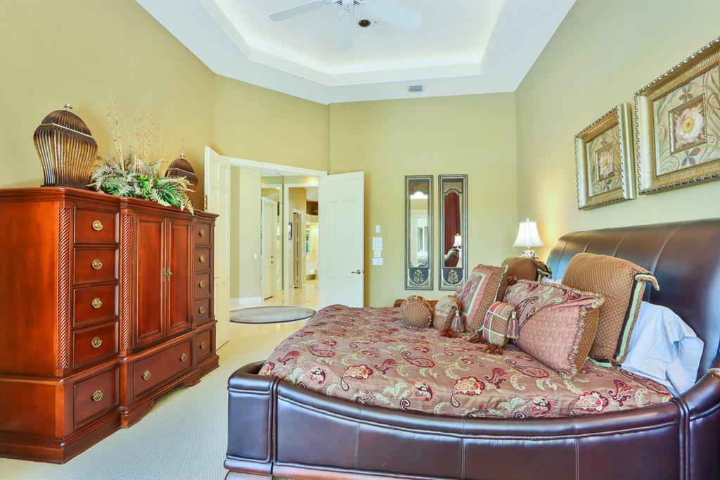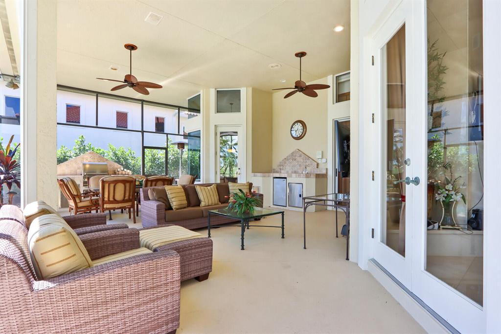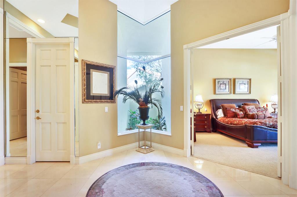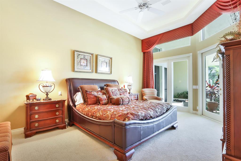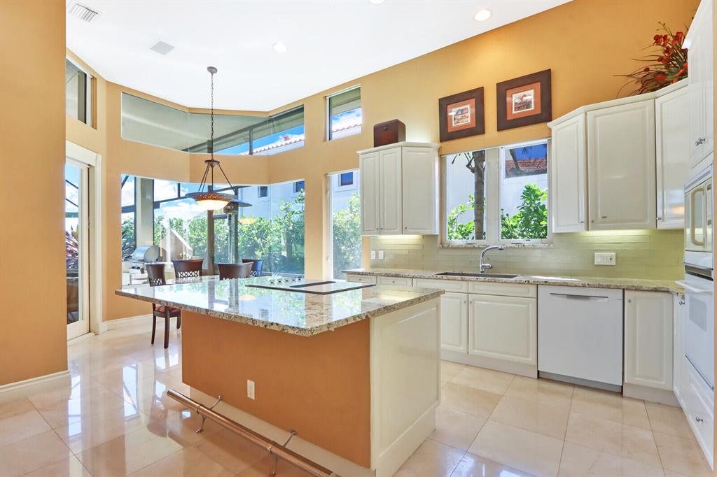 Prime CUL-DE-SAC location in desirable Egret Meadow with BREATHTAKING WATER AND GOLF VISTAS of the Jack Nicklaus-designed 8th fairway of the Legend course. This magnificent custom contemporary home is an ARCHITECTURAL MASTERPIECE harmoniously integrating the best of indoor and outdoor Florida living. From the herringbone pattern travertine driveway, you'll appreciate the custom, one-of-a-kind feel of this unique home. A dramatic vaulted front porch ceiling with wood accents welcomes you, and the design feature continues inside, into the WOW-foyer and over-the-top living room that looks like it could be a lobby for a tropical resort.