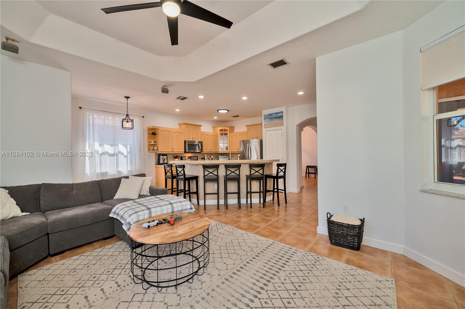Spectacular 3 Bed / 2.5 Bath home located in the private and guard-gated community of Nautica. This freshly painted one-story home boasts a generous layout with high volume ceilings, tile flooring, and an eat-in kitchen complete with a breakfast area, center island, and all upgraded SS appliances. The home displays a New custom half-bathroom, laundry room, plus a 2-car garage. The home is equipped with Accordion shutters throughout and features a 2-year old Roof. The home also offers a covered terrace overlooking the easy-to-maintain fenced backyard and fruit trees. Community amenities include a large clubhouse, resort-style pool area, several playgrounds, tennis courts, basketball courts, and more. Low HOA!