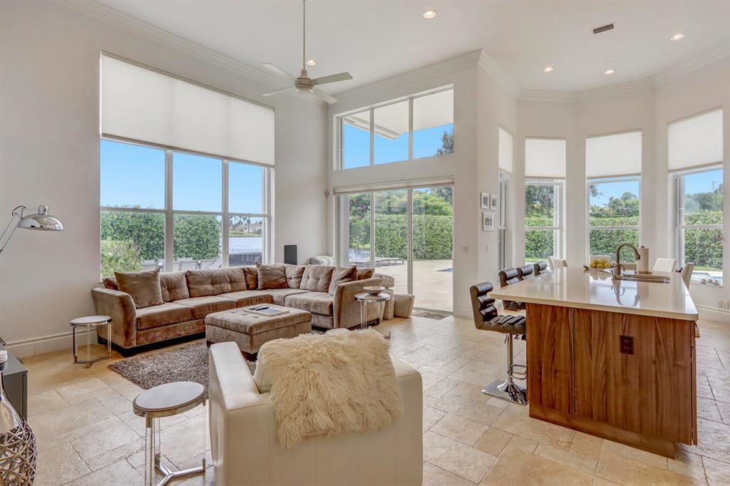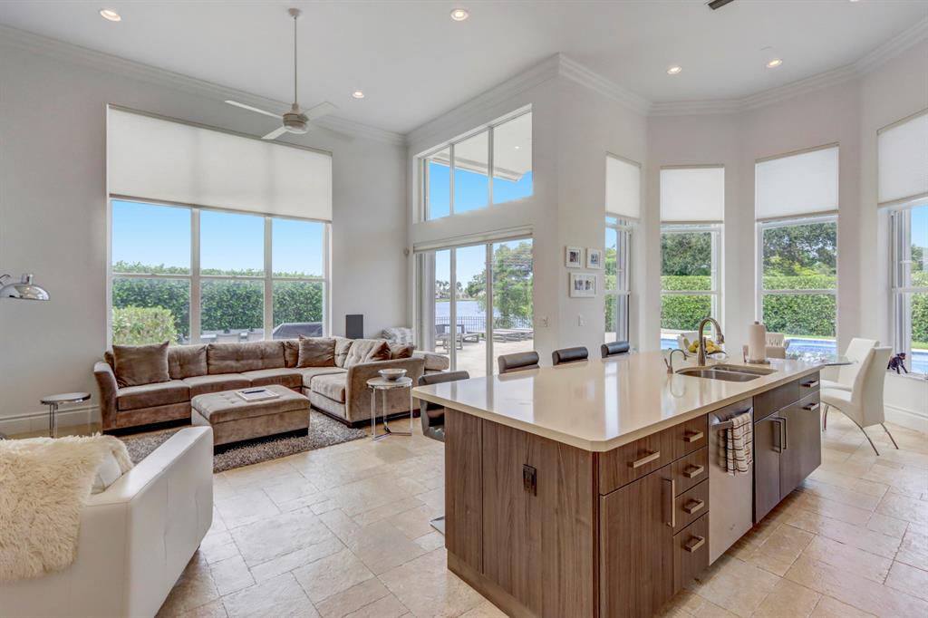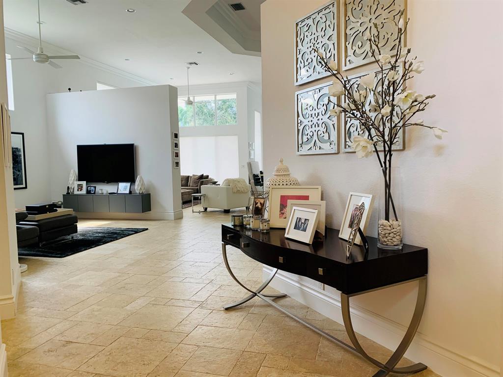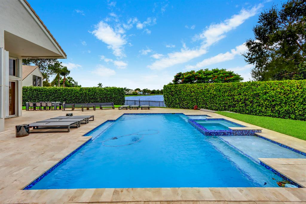 FABULOUS HUGE LAKE LOT! Offering tranquil lake views & tasteful contemporary renovations, this one-story home of 3 bedrooms & 3 baths offered furnished/turnkey is open & bright with plenty of windows. It features volume ceilings with crown moldings & extra high-hat lighting; Jerusalem marble floors with upgraded baseboards & neutral carpeting;custom closet design & window treatments. The Dining Room offers built-in shelves. The contemporary open island kitchen offers dark brown cabinetry & quartz countertops, stainless steel appliances & a lovely breakfast area overlooking the beautiful backyard. The bathrooms have been remodeled in contemporary design. The rear yard is spacious & pie-shaped offering an oversized heated pool with a spa & sun shelf and grassy area overlooking the lake!