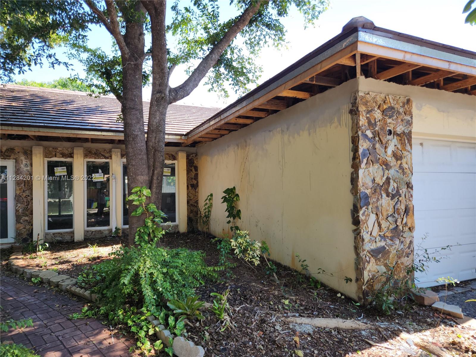 Great opportunity to complete your dream home or investment property with all of your desired finishes. Spacious 3/2.5, 2 car garage ranch style property on a corner lot in the golf course community of Cooper City Estates. Brand new concrete roof and impact windows/doors. Circular driveway and fenced back/side yard for privacy. Space for boat or RV. Spacious open concept layout for main living area with space for kitchen island in the middle. All bedrooms together. Large main bedroom with walk-in closet, separate wall closet and large bathroom with access to back patio. Laundry room and half bath next to garage. No HOA in established community with excellent schools. Walking distance to executive golf course and park. Near I-95, Turnpike, airport, restaurants and shopping. Sold As-IS.