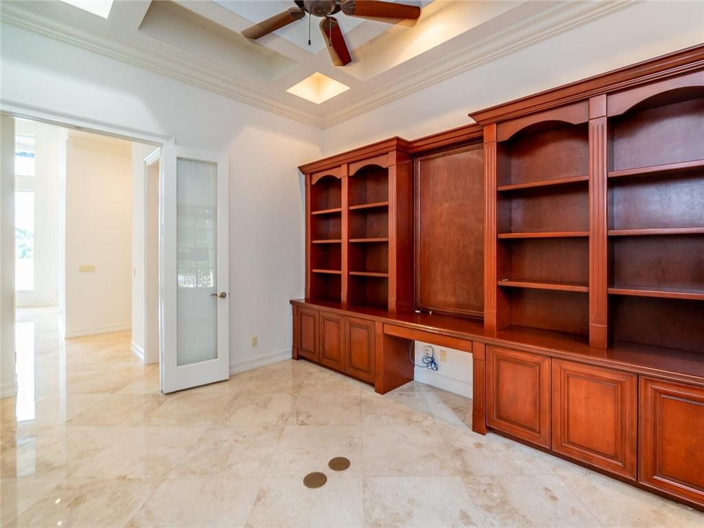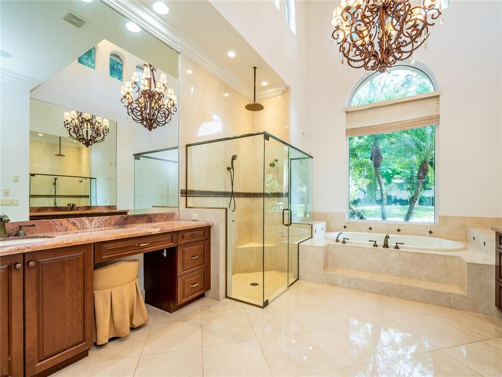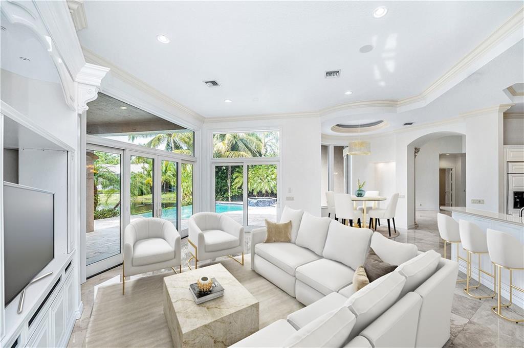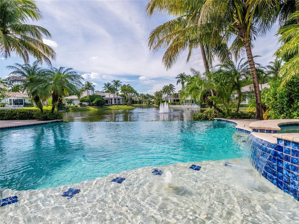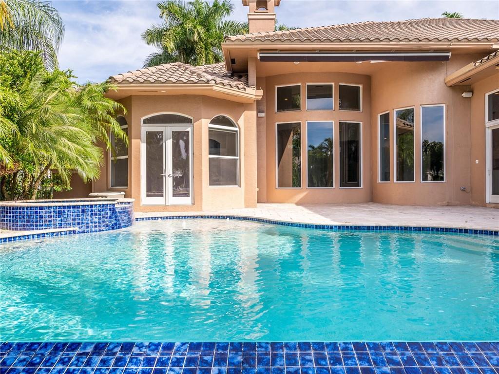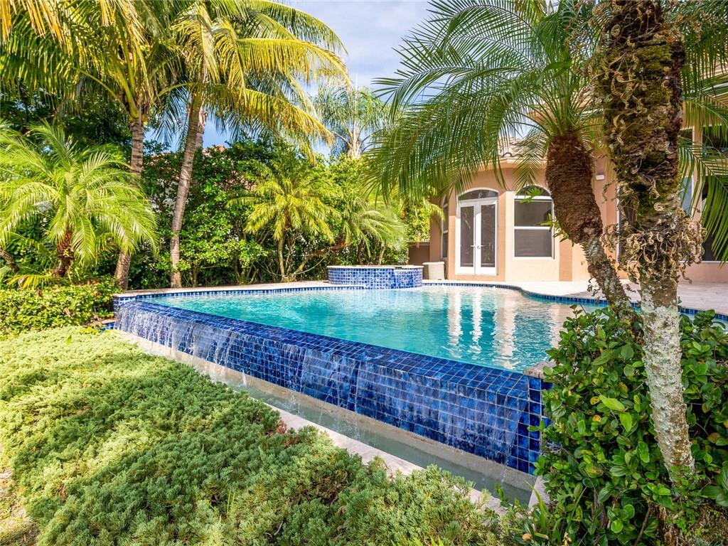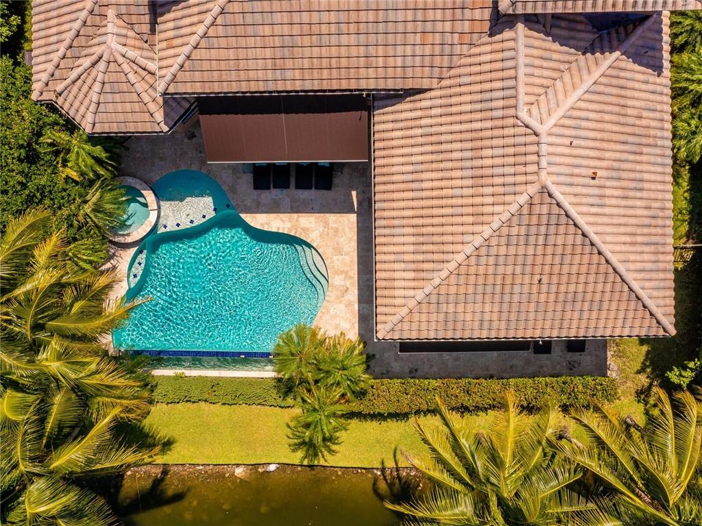 Impeccable, Modern Masterpiece! Upgraded waterfront pool estate in prestigious, gated Hawks Landing. Incredibly maintained custom 6 BR/6.5 BA ensuite +office w/built-ins + loft. Enjoy relaxing sunsets from your covered lanai overlooking oversized heated infinity pool w/spa while a waterfall fountain cascades the spectacular expansive lake. BBQ from your summer kitchen amid lush, private landscaping. Opulence abounds w/ regal entry, formal dining, custom millwork & lighting, Italian marble, gourmet kitchen w/GE Monogram appl., dbl oven, island, Thermador, Bosch dishwasher, granite & wood cabinetry. Primary BR suite w/ walk-in closets, dual vanities, soaking tub & shower. 3-Zone AC, laundry room, butler’s pantry, & coffered ceilings, & maids quarters... Close to American Heritage School.