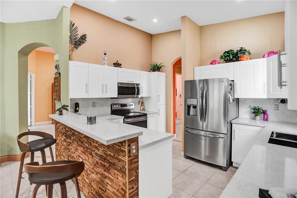 Look no further, this cozy and spectacular 3beds/2.5 Baths, upgraded Kitchen includes quartz counter tops & backsplash, white cabinetry and pantry, stainless steel appliances, the master bedroom features a walk-in closet and roman tub & Separate shower, two car garage with extended driveway to fit more cars, in a very private cul-de-sac with endless beautiful lake views, patio screened and extended back yard for family entertainment. WACH THE SLIDESHOW and you will be amazed. Great gated community of Monarch Lakes, sub-div. " Palm Cove, with easy access to major highways, turnpike, restaurants, shopping malls, schools and much more, Don't miss out !