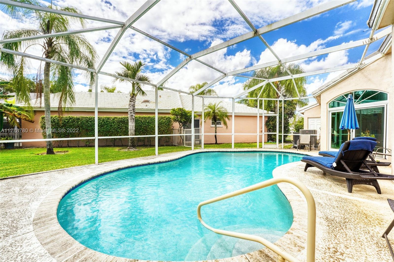 Enchanting, bright & spacious house at Grand Palms HOA & Golf Community! Gorgeous swimming pool reflects a lot of light integrating living, dinning and kitchen areas giving an expansive feeling; yet the house is private due to its privileged location at a Cul-de-Sac. HOA includes ADT Alarm, 24 hr Manned Gate Security and Patrol, Lawn, Landscaping, Exterior Painting, Pressure Cleaning, Sprinklers & Basic Cable. Enjoy Grand Palms Golf Resort lifestyle with it’s beautiful palm lined streets, green spaces, playground and biking/jogging paths. Great location!