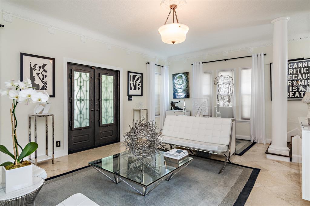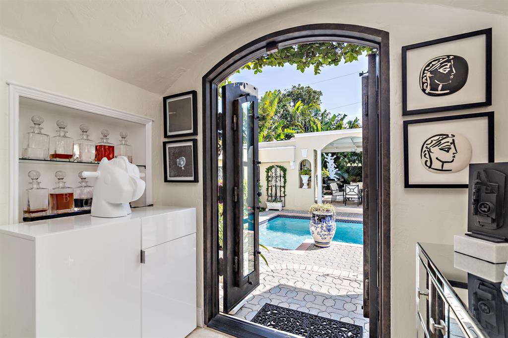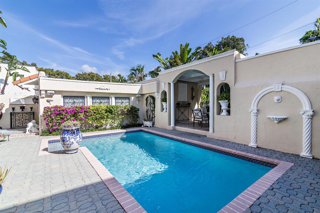 This tastefully renovated 1925 Spanish style Flamingo Park residence epitomizes elegance and classical style offering a 2-bedroom 1.5 bath house, a 1 bedroom 1 bath guest house and pool. The downstairs living spaces offer period architecture and easy traffic flow for entertaining. The large living room offers high ceilings, a fireplace, travertine flooring and impact French doors that lead to the pool area. The updated eat-in kitchen off the formal dining room offers a gas stove, granite counters and an updated half bathroom. The second-floor master suite offers wood flooring and the renovated master bathroom offers a glass shower and marble flooring. The second bedroom is used as a home office. Outside the pool area leads to the dining pavilion and a 1 bedroom 1 bath guest house and