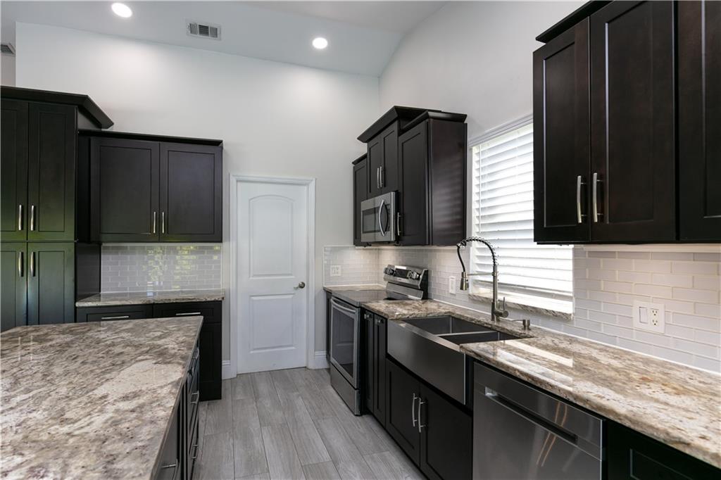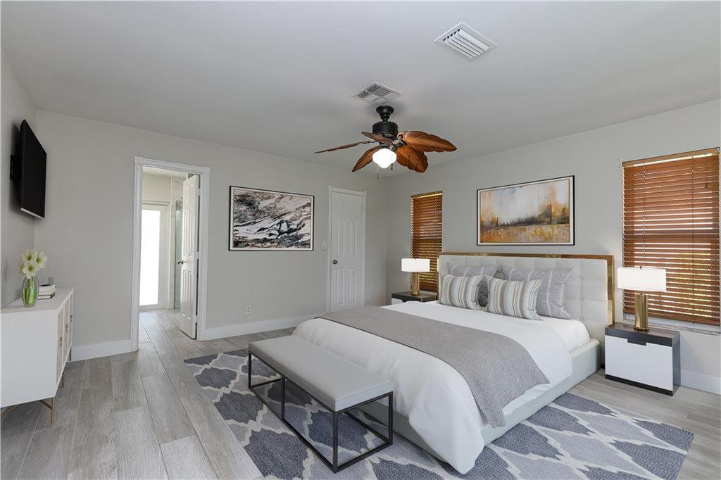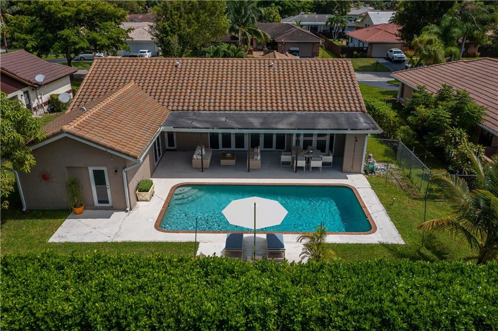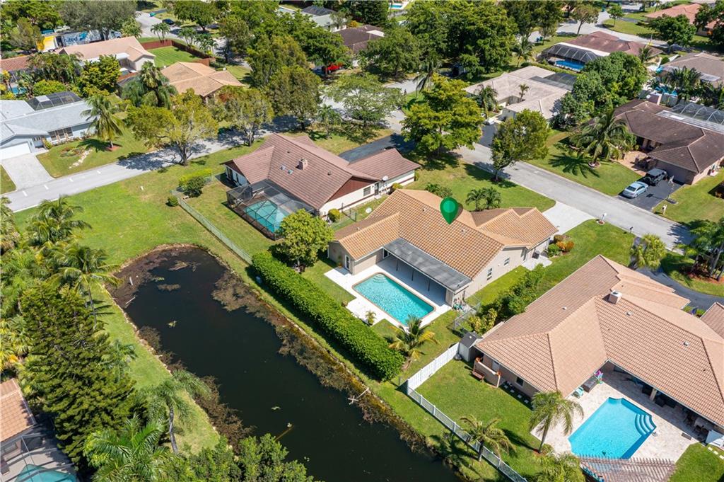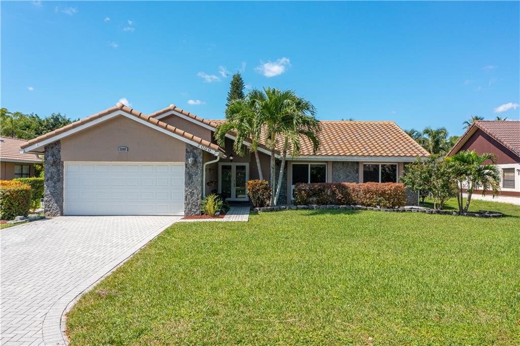 MOVE RIGHT IN, EVERYTHING HAS BEEN DONE FOR YOU! Open floor plan & gorgeous kitchen w/ a 9' island make this a great entertaining space. Separate living room can easily be converted to your home office / 4th bedroom. Insurance concerns? This home has a 2019 roof & IMPACT windows / doors. Porcelain wood look plank flooring throughout, kitchen updated w/ Procraft wood cabinetry w/ soft close doors/drawers, lg. center island, granite countertops, glass tile backsplash, farmhouse style sink & Samsung stainless steel appliances. Other great features include multiple sets of IMPACT French doors all w/ access to the patio/pool, both bathrooms fully updated, fenced 1/4 acre lot, covered patio, salt chlorinated pool, water heater '21, new garage door opener & sprinklers that run off canal & NO HOA.