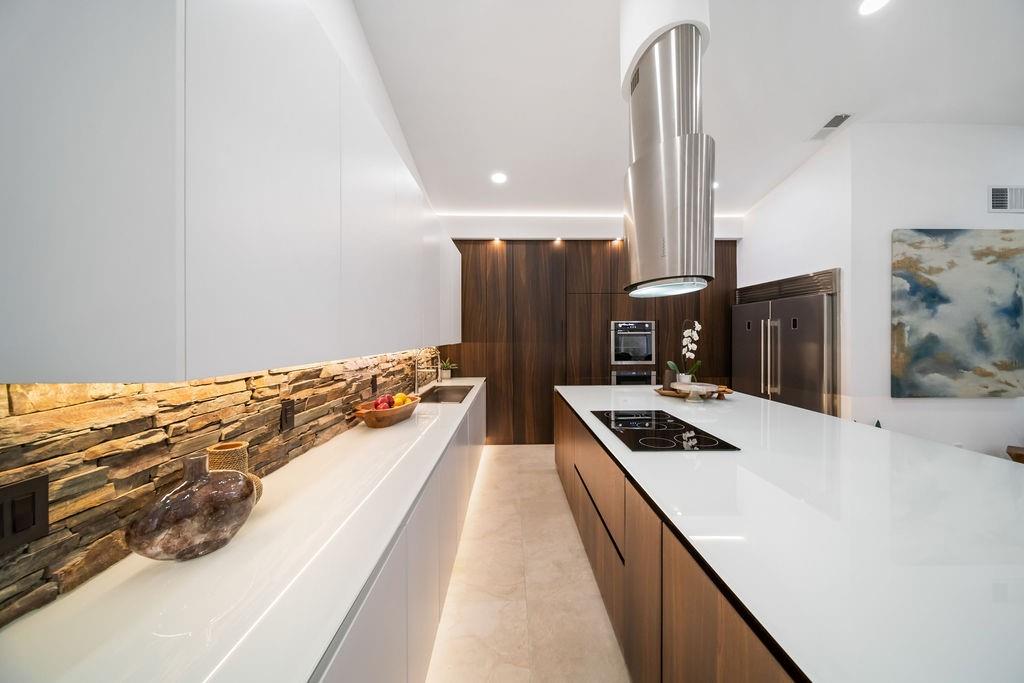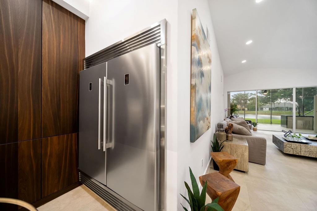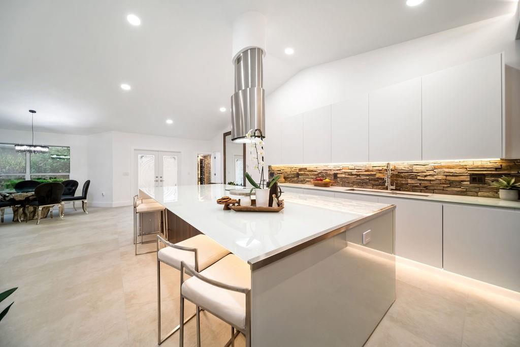 Absolutely stunning 3/3.5 single family waterfront home completely remodeled with only the finest of materials. Property upgrades Include: 48" x 24"matte finished imported porcelain tile, huge chef inspired contemporary Italian kitchen with unique secret butler's pantry, massive 12x6 island dressed in rich 1/2" glass countertop including waterfall, undercabinet lighting throughout, all new stainless steel slim line kitchen appliances, oversized 60" built in fridge/freezer, unique design ceiling mounted Falmec 30" Ellipso Island range hood (ducted & vented outside) glass enclosed Temp controlled wine cellar, custom walk-in wardrobe closet, covered outdoor kitchen w/quartz bar top, propane grill, Intergrated sink, faucet, mini fridge & stainless steel cabinets. See list for complete upgrades