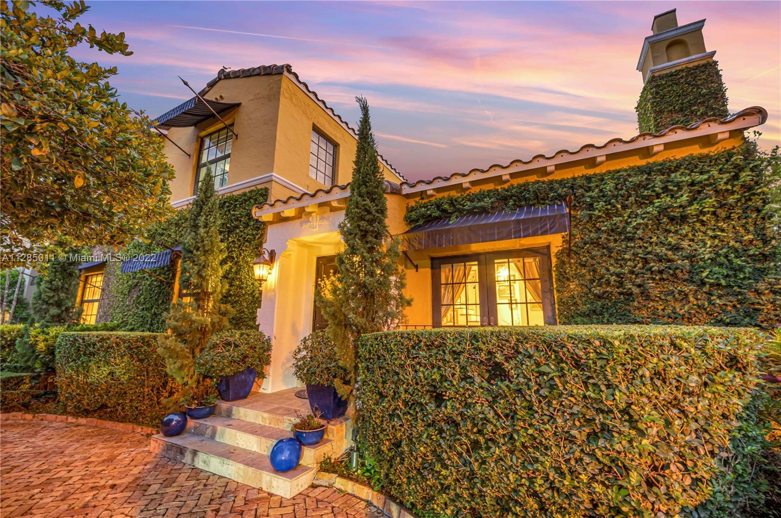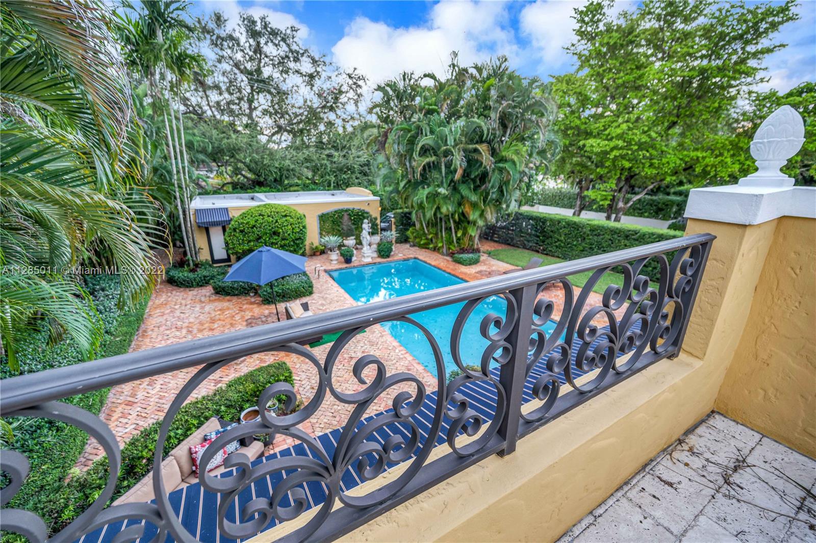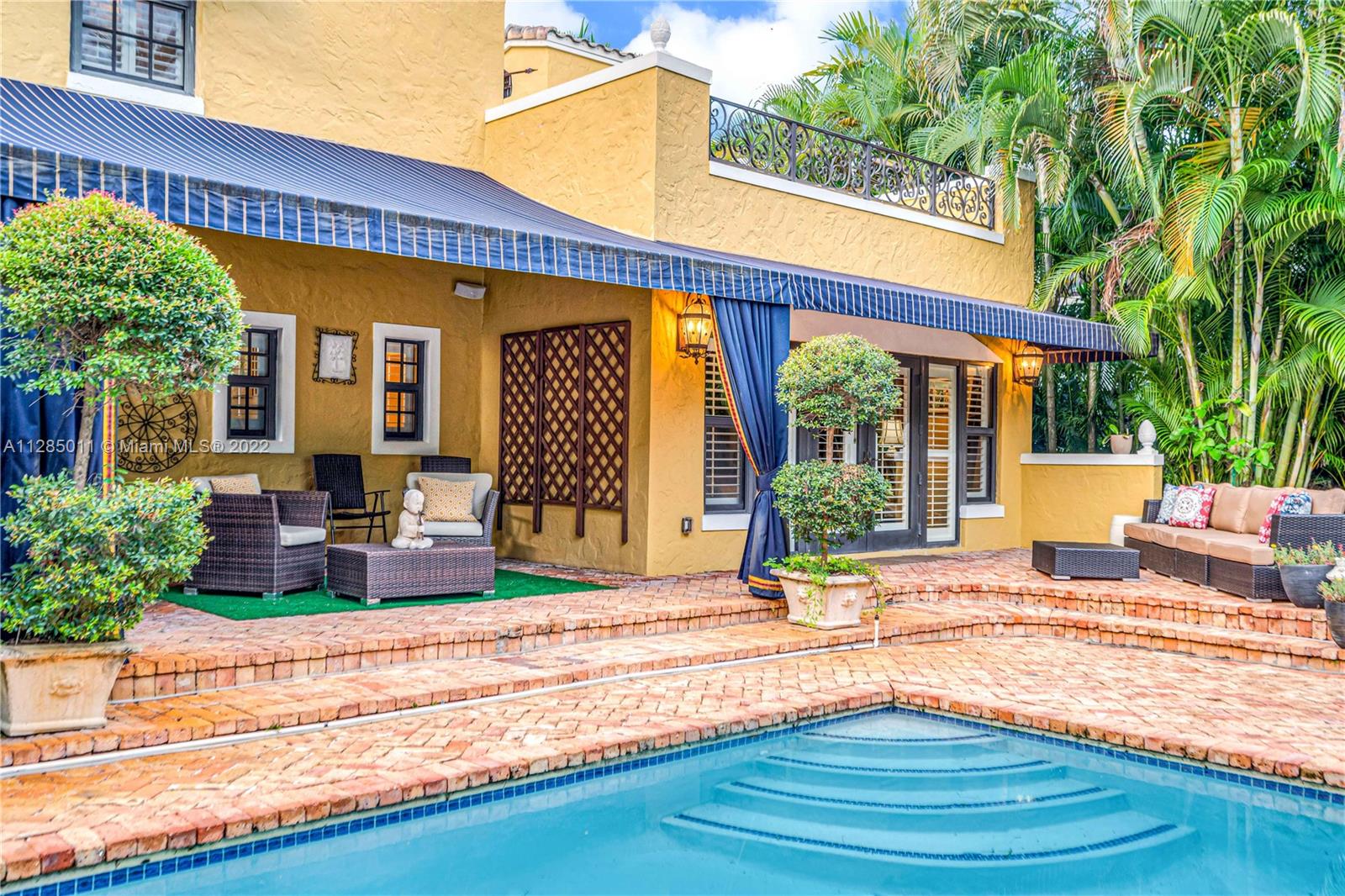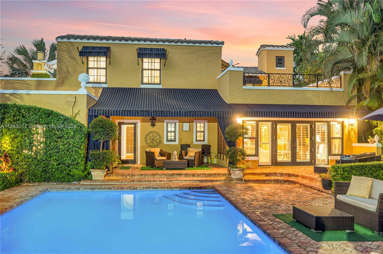 The prestige of Coral Gables architecture married with the luxury of modern design, the star of Alhambra Circle is a stones throw from the Granada Golf Course and the historic Biltmore Hotel. Enchanting first steps reveal cathedral ceilings and romantic fireplace creating a warm welcome. The main house first floor offers an oversized family room, ensuite bedroom, office/den and formal dining. Enjoy the stunning grounds accessible from each room. Upstairs another ensuite bedroom and the principal bedroom complete with a huge roof top terrace. The allure of the pool area captivates a European essence with the approval of Poseidon as its attentive guardian. "Waterfront" cottage can opt as your 4th room with a full bathroom. Other amenities include, elevator, 2car garage & impact windows/doors