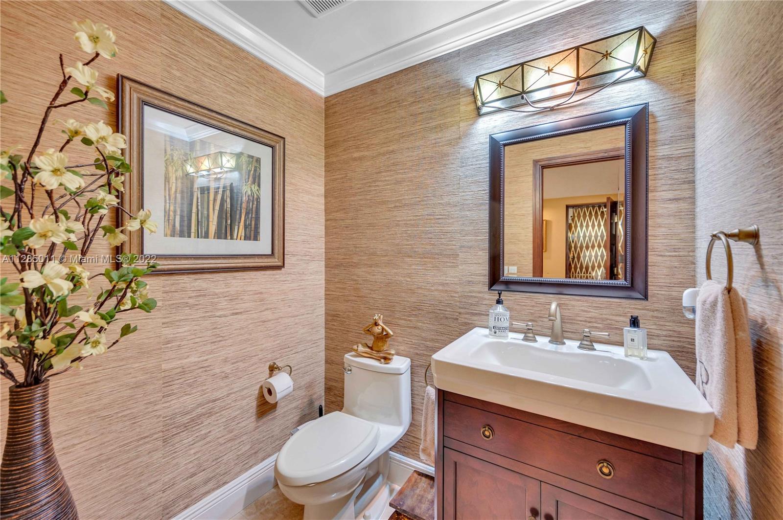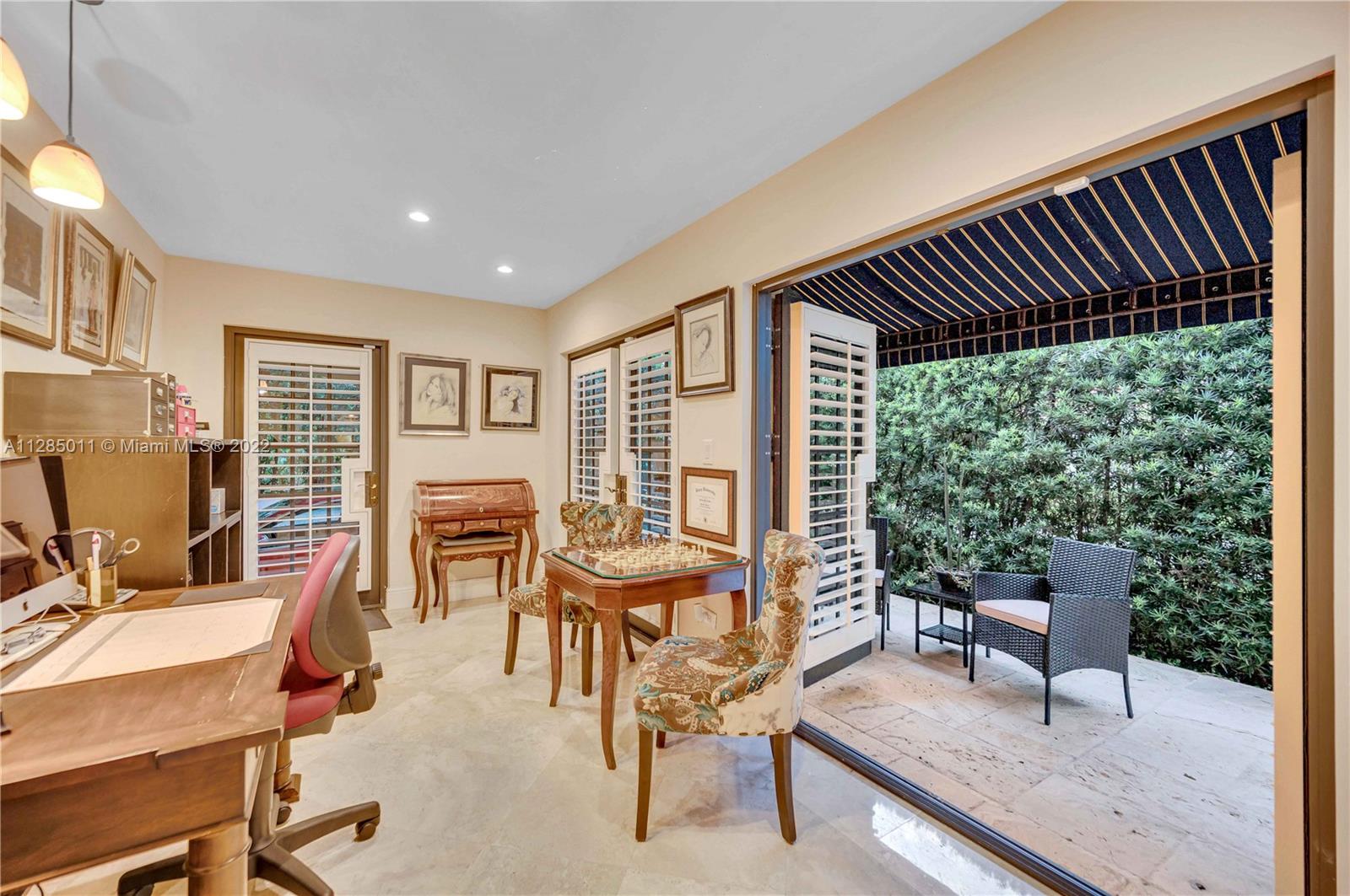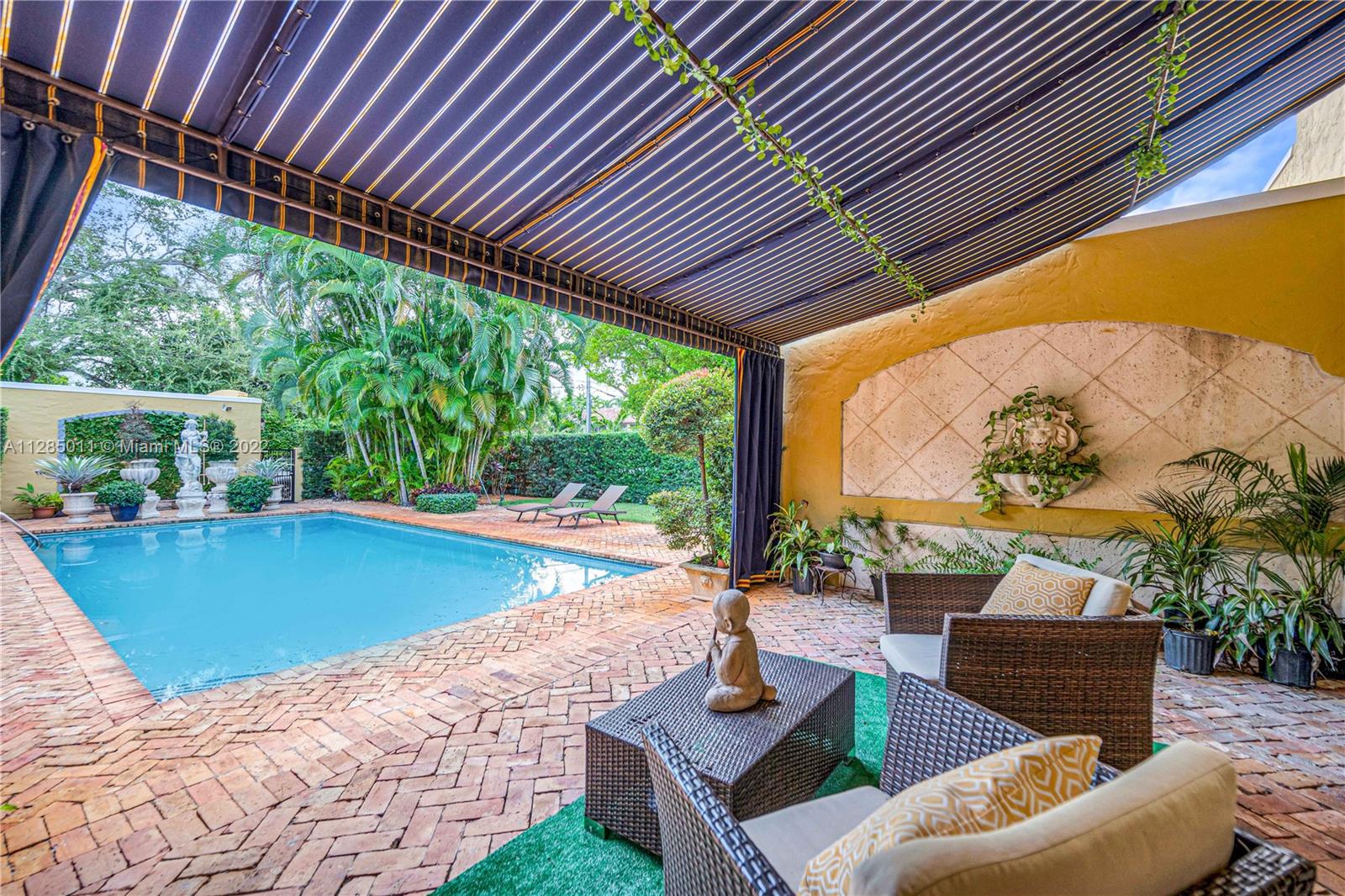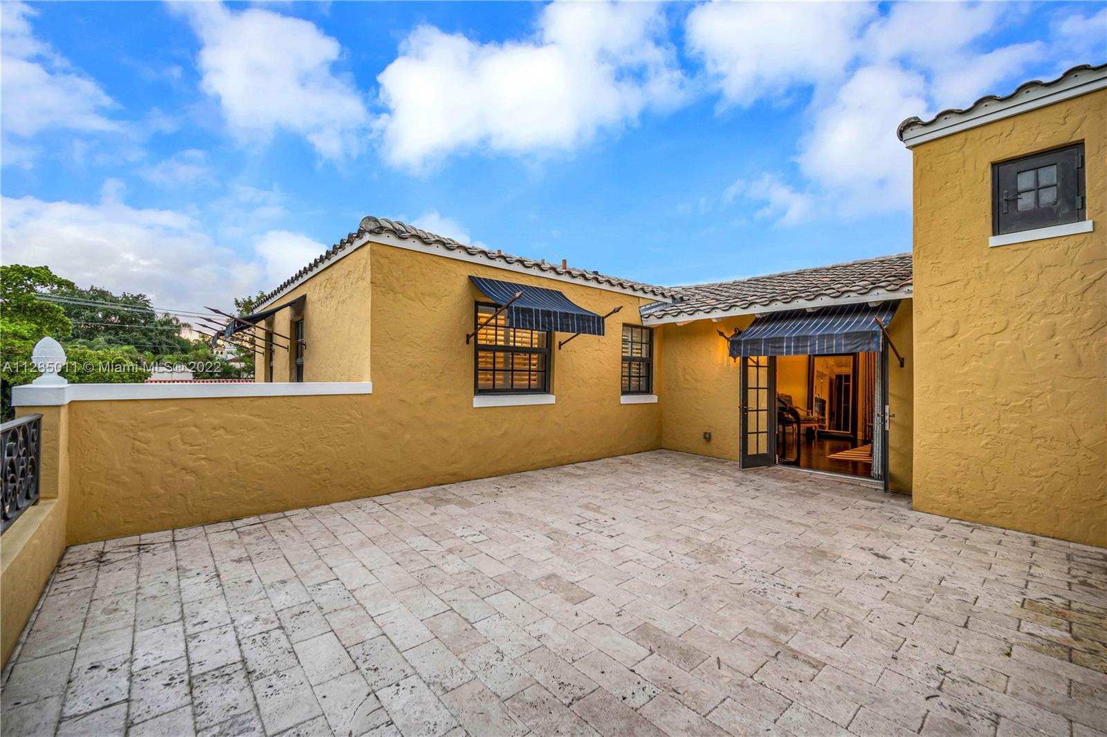 The prestige of Coral Gables architecture married with the luxury of modern design, the star of Alhambra Circle is a stones throw from the Granada Golf Course and the historic Biltmore Hotel. Enchanting first steps reveal cathedral ceilings and romantic fireplace creating a warm welcome. The main house first floor offers an oversized family room, ensuite bedroom, office/den and formal dining. Enjoy the stunning grounds accessible from each room. Upstairs another ensuite bedroom and the principal bedroom complete with a huge roof top terrace. The allure of the pool area captivates a European essence with the approval of Poseidon as its attentive guardian. "Waterfront" cottage can opt as your 4th room with a full bathroom. Other amenities include, elevator, 2car garage & impact windows/doors