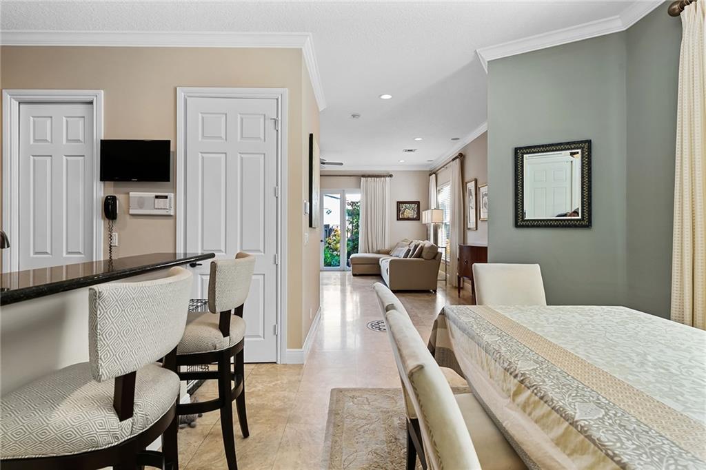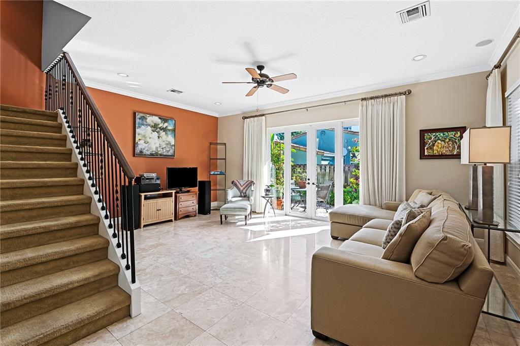 Exceptional location and elegance meet at this fee-simple Victoria Park townhouse. No HOA and walking distance to Las Olas Blvd. The first floor greets you with high ceilings, travertine flooring, and French doors leading out to the fenced and private yard with lush tropical landscaping. A large kitchen with gas range and walk-in pantry, dining area, and great living room round out the first floor. Laundry and three total bedrooms are on the second floor. The spacious master suite features an en-suite bath and his & hers walk-in closets. The third floor features a large open loft, with a full bathroom and closet, which could be converted into a 4th bedroom. French doors lead out to the rooftop terrace. Integrated B&W speakers throughout most of the homes interior and exterior.