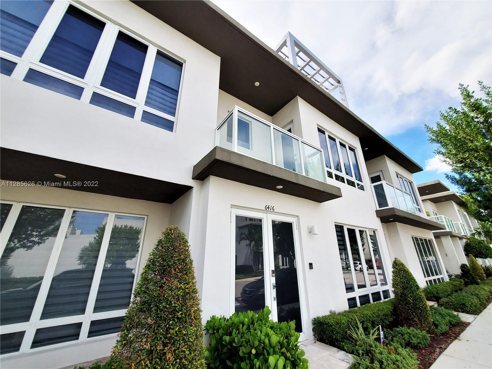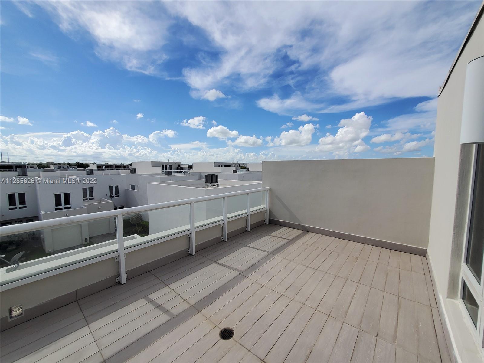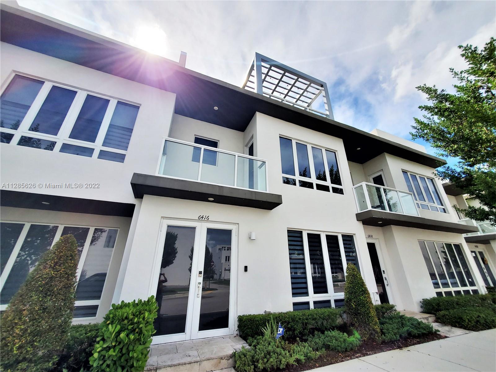 Beautiful home in the sough after Landmark at Doral. This tri-level is a dream come true, with an amazing layout and a modern open concept. The home has plenty of outdoor spaces to entertain and enjoy, including a patio on the first floor, a balcony in the master bedroom, and two separate terraces on the 3rd floor. The very spacious main terrace features a summer kitchen, outdoors sitting and dining area. This 3 Beds, 3.5 baths and 2 car garage home features impact windows/doors, a full-size laundry room, and built out closets. Spacious and modern kitchen with quartz countertops and SS appliances. Luxurious Clubhouse with amazing amenities: tennis courts, a large pool, children’s splash pad, BBQ area, outdoors fireplace, full gym, sauna, and much more. Easy access to the Turnpike.