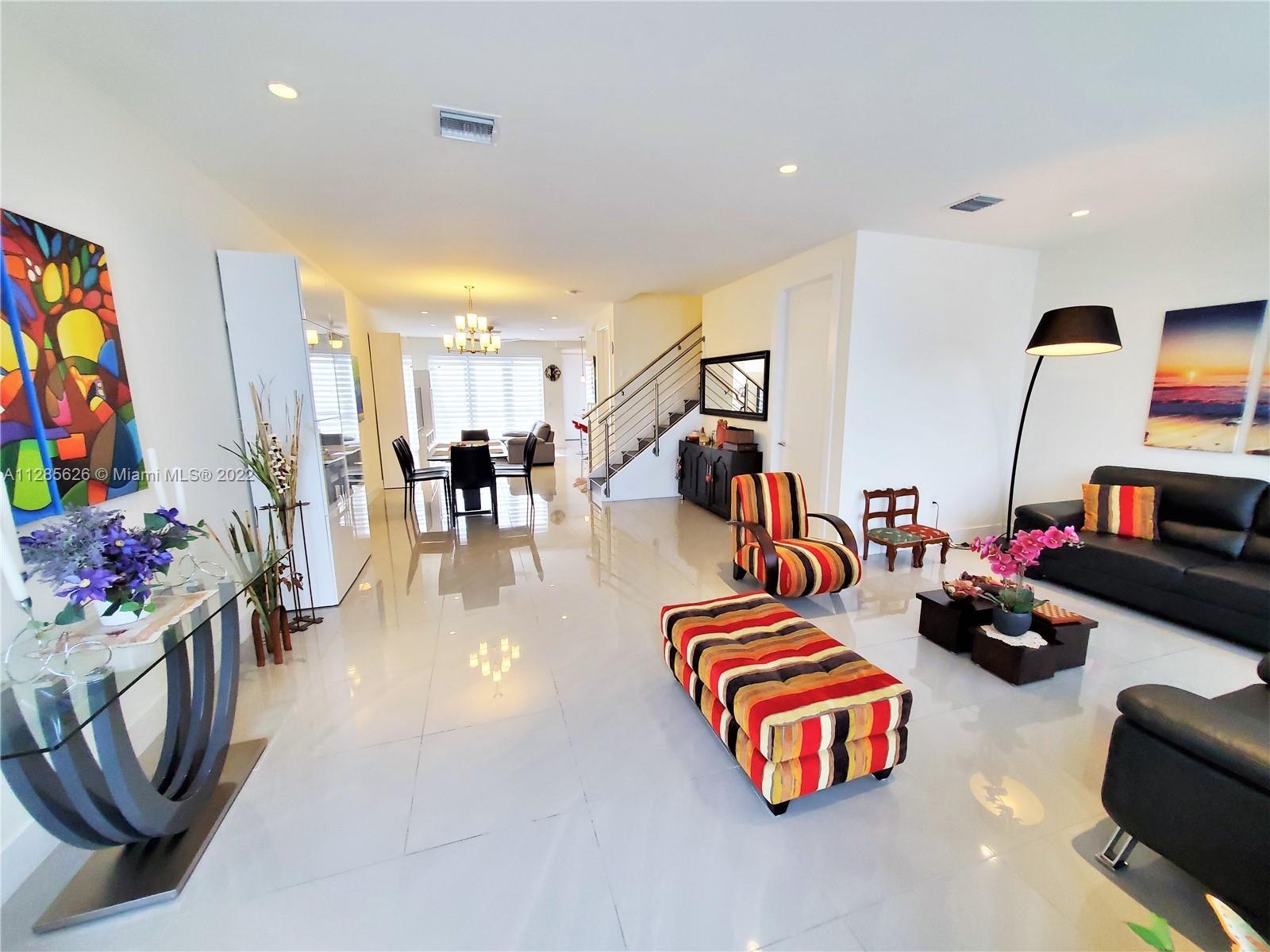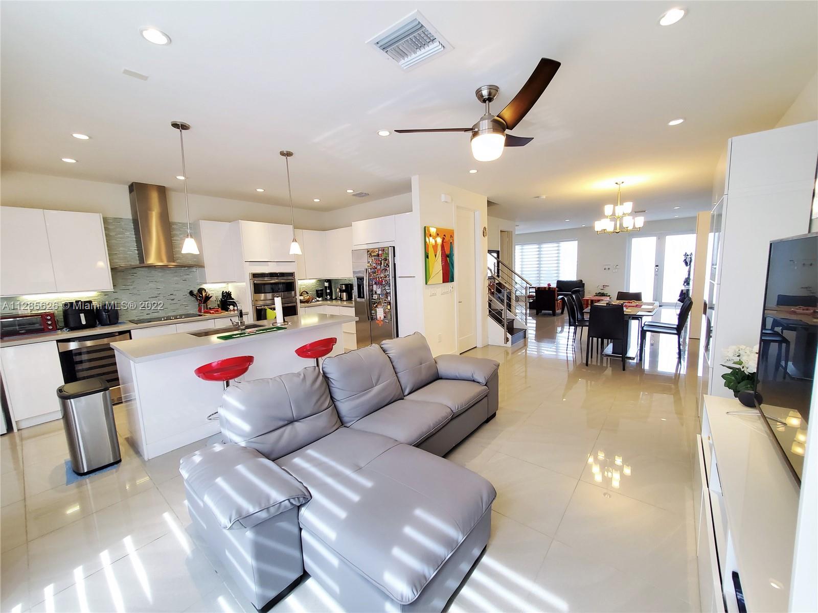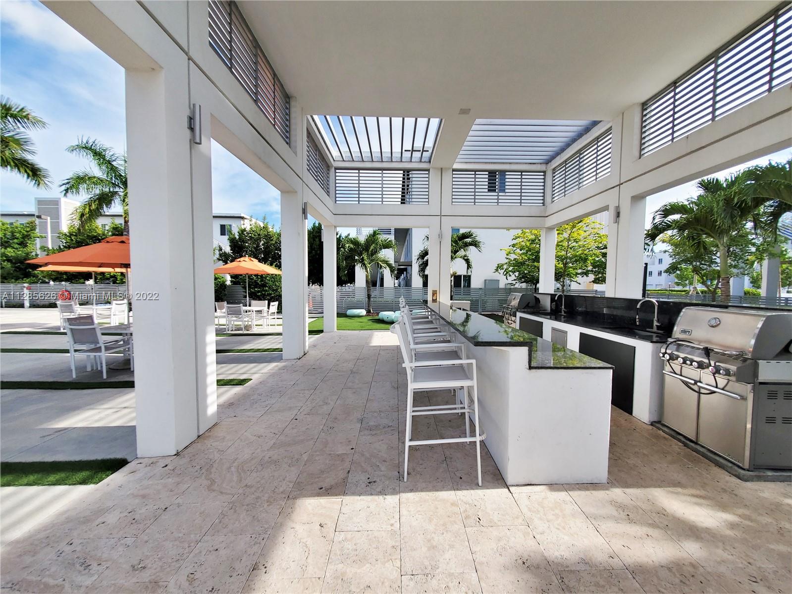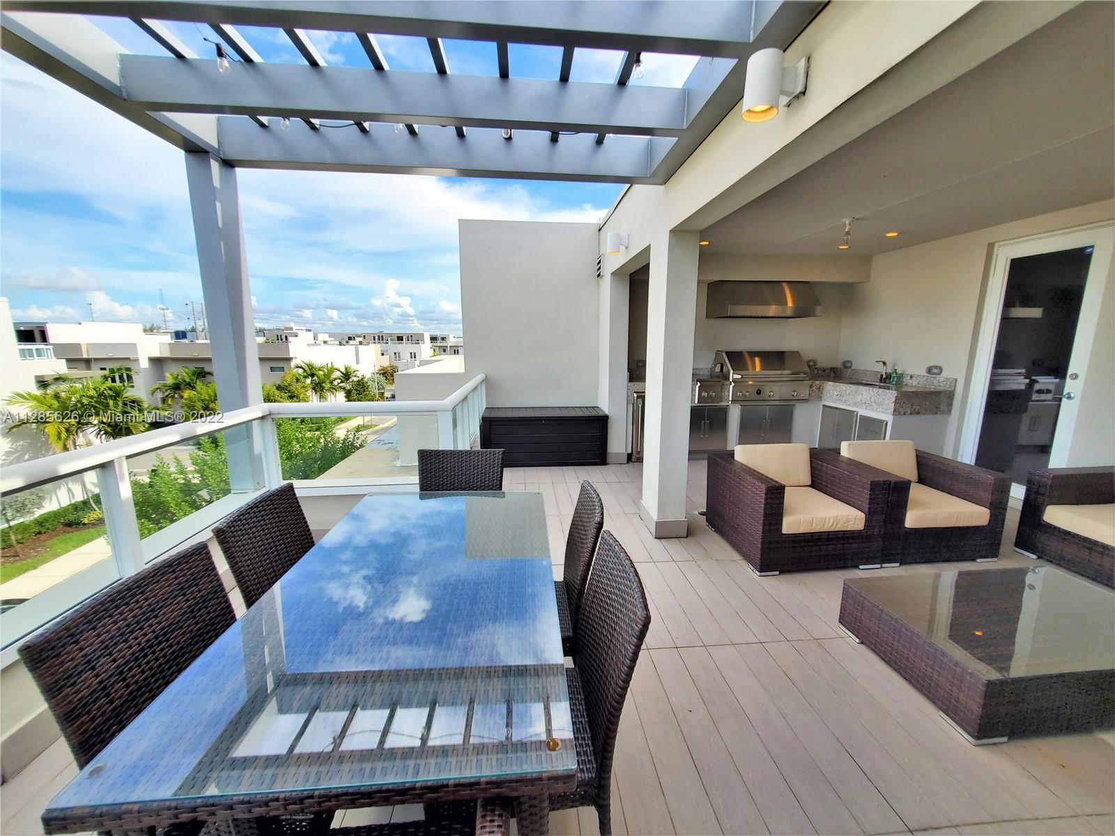 Beautiful home in the sough after Landmark at Doral. This tri-level is a dream come true, with an amazing layout and a modern open concept. The home has plenty of outdoor spaces to entertain and enjoy, including a patio on the first floor, a balcony in the master bedroom, and two separate terraces on the 3rd floor. The very spacious main terrace features a summer kitchen, outdoors sitting and dining area. This 3 Beds, 3.5 baths and 2 car garage home features impact windows/doors, a full-size laundry room, and built out closets. Spacious and modern kitchen with quartz countertops and SS appliances. Luxurious Clubhouse with amazing amenities: tennis courts, a large pool, children’s splash pad, BBQ area, outdoors fireplace, full gym, sauna, and much more. Easy access to the Turnpike.