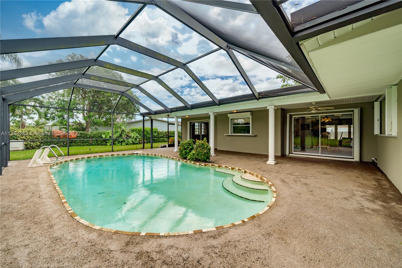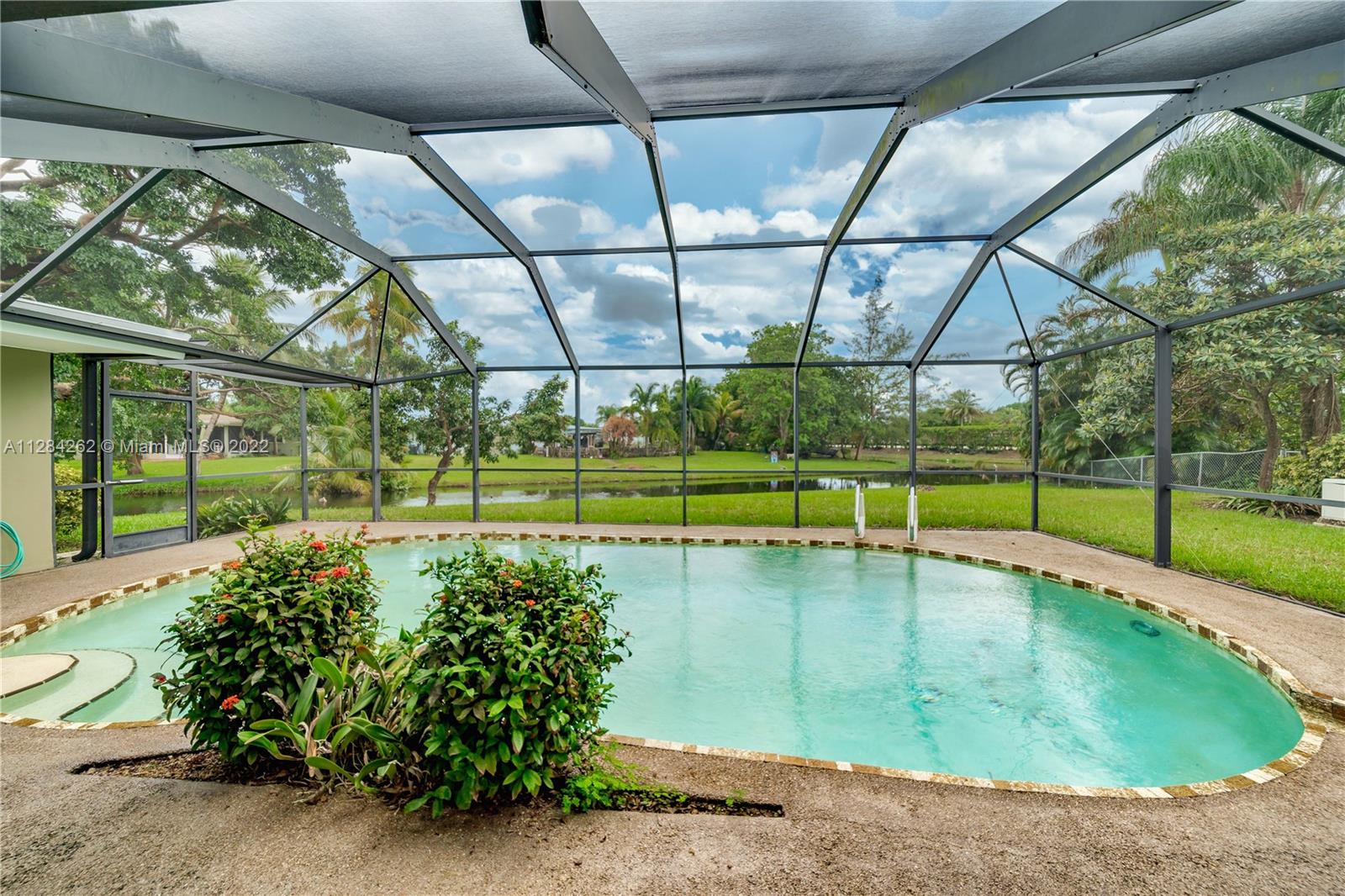 Great opportunity to own a waterfront & pool single-family home in Pasadena Lakes. Brand new Roof 2021. FHA/VA welcome. Gorgeous waterfront view from kitchen, dining room & family room (could be 4th bedroom separated from others, can be used for In-Laws, office/studio). Over 1/4 acre lot. Fenced backyard has screened in-ground pool, large deck, and generator that powers the entire house. Paved front porch, driveway, and side entrance to backyard. Oversized garage. No HOA. Impact front windows and garage door, accordion shutters in other doors and windows. AC 2016. Natural gas Water Heater. Excellent location near schools, universities, hospitals, parks, restaurants, shopping, and The Famous Hard Rock Hotel and Casino.