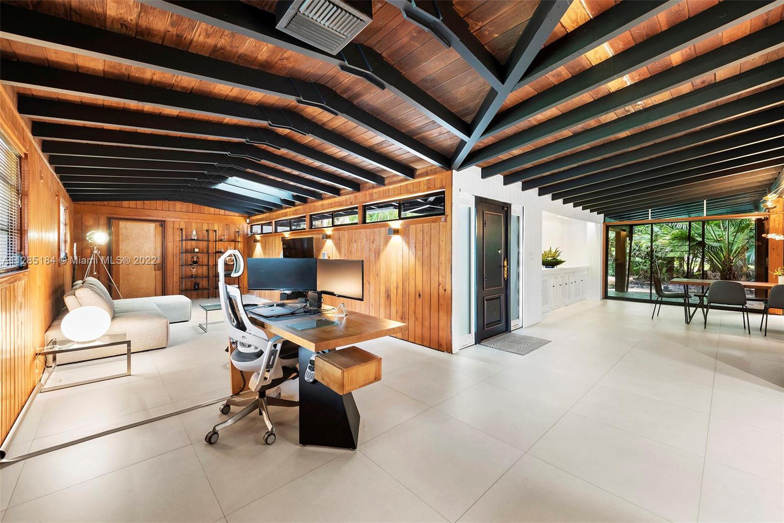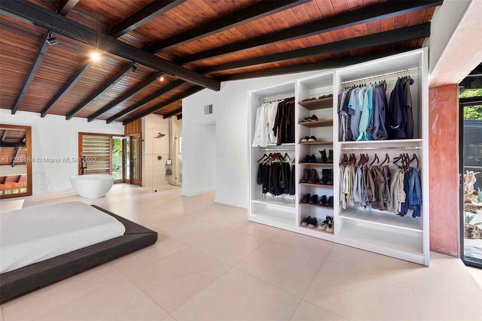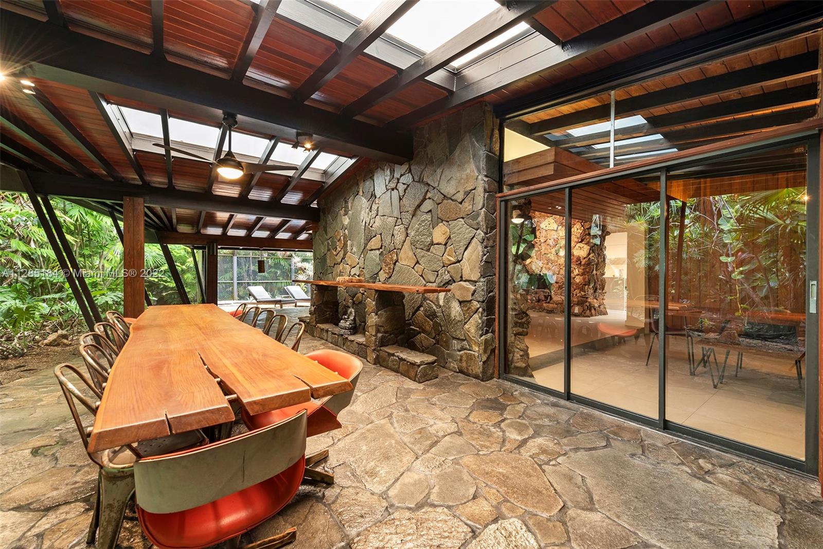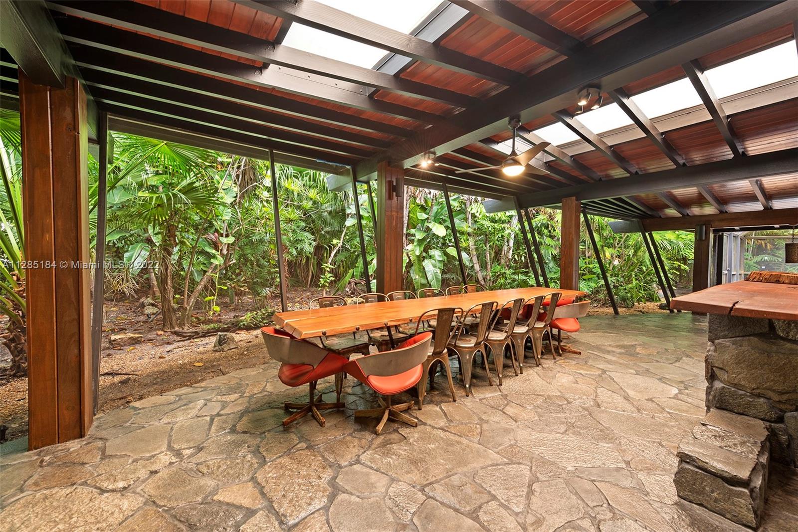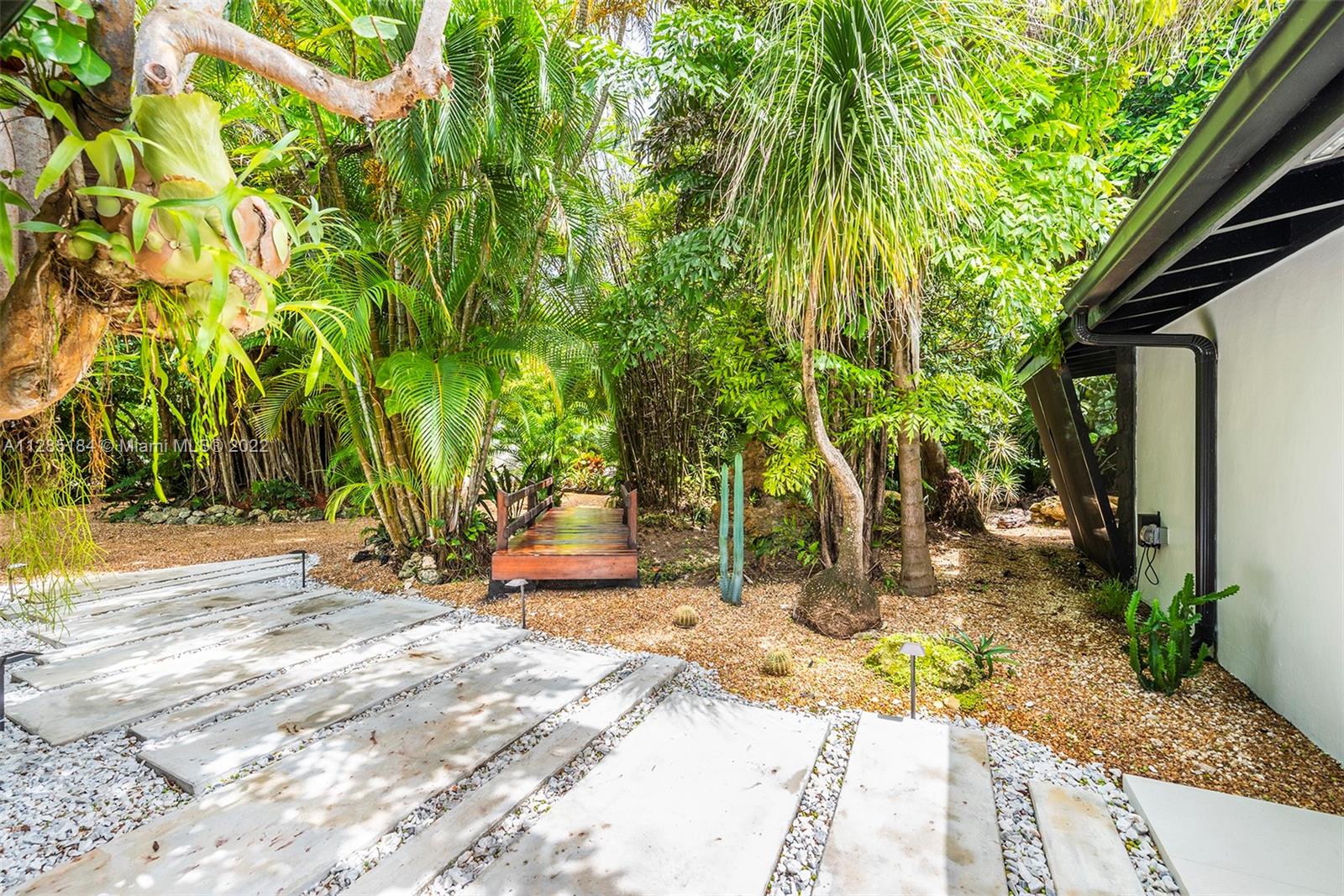 Stunning, ultra-private luxury home designed by renowned modernist architect Alfred Browning Parker. Completely renovated, the unique, nature-inspired home has 3 beds (converted from four) and 2 baths with new porcelain tile throughout. Spanning 3,181 square feet, the open concept living spaces display masterpiece craftsman touches including vaulted, beamed ceilings, original onyx rock fireplace, and exterior gray slate from Colorado. A brand-new kitchen features state-of-the-art appliances, wine fridge, white quartz counters with breakfast bar, and custom white cabinets. The spacious master suite has custom his/her closets with lighting and a designer open bathroom with dual sinks, Toto toilet and bidet, glass shower, and Clovis standalone soaking tub looking out to the garden.