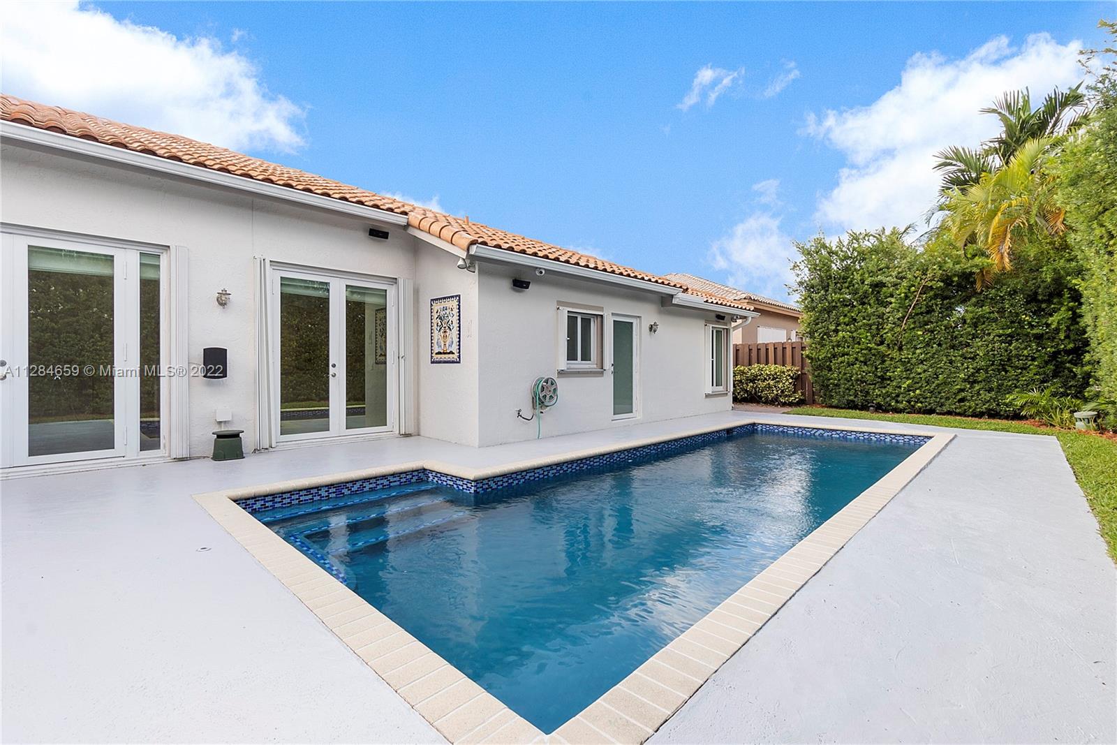 Impeccable 4/2 One-Story Single-Family house at prestigious Doral Isles Riviera. Doors and Impact windows, plus accordion shutters. California closets, Italian chandelier in dining room. Automatic sprinkler system. New A/C compressor. Bose & Yamaha Sound system included in family, living, and outdoor areas. 3-TV smart system included. New dishwasher. Tile floor, and laminated wood floor in bedrooms. Salt pool surrounded by nice well-kept landscaping. 2-car garage. Alarm system ready, several cameras installed & available. Spectacular Club house includes lots of amenities: tennis courts, basketball, baseball & soccer field, well equipped Gym, swimming pools, playground, running & walking paths, Party salon, etc. A+ Schools. Minutes to Turnpike Expressway.