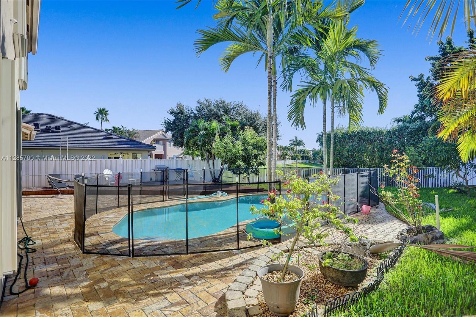 REDUCED TO SELL!! Spacious 4/3 lake pool home in the desirable gated community of Windsor Palms. SS appliances, granite counter tops, high impact french door in family room which allows lots of natural light & beautiful views of the pool & lake. One bedroom downstairs and 3 large bedroom upstairs including Master Suite with dual vanity, private toilet, double closets, shower, a roman tub. First floor is tiled and second floor is laminated. Accordion shutters, Washer & Dryer, Two Car garage converted to an office but can easily be converted back. Covered patio with ample space for entertainment, travertine pavers and a wood deck. Pool fencing for kids safety. Easy access to 1-75 and minutes from Publix, shopping malls, hospital, restaurants & schools. Great Family Home. Make it yours!!