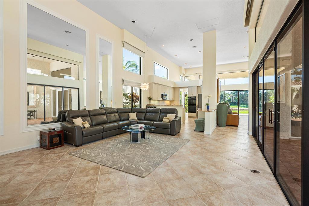 This courtyard home is located on the palm tree-lined estate section of Coral Cove in The Polo Club. The main house features endless opportunities with volume ceilings, open sightlines, and an abundance of natural light throughout. The open concept of the spacious great room connects to the oversized covered patio where you can enjoy the picturesque views of the serene lake as the backdrop. The primary suite also overlooks the sparkling lake while offering two walk-in closets and a large primary bathroom. Two additional secondary bedrooms are both en-suite and lead to the courtyard for resort-style living. An oversized dining room connects to the kitchen where the convenient peninsula offers an additional place to dine as well as the eat-in kitchen space. The family room flows to the