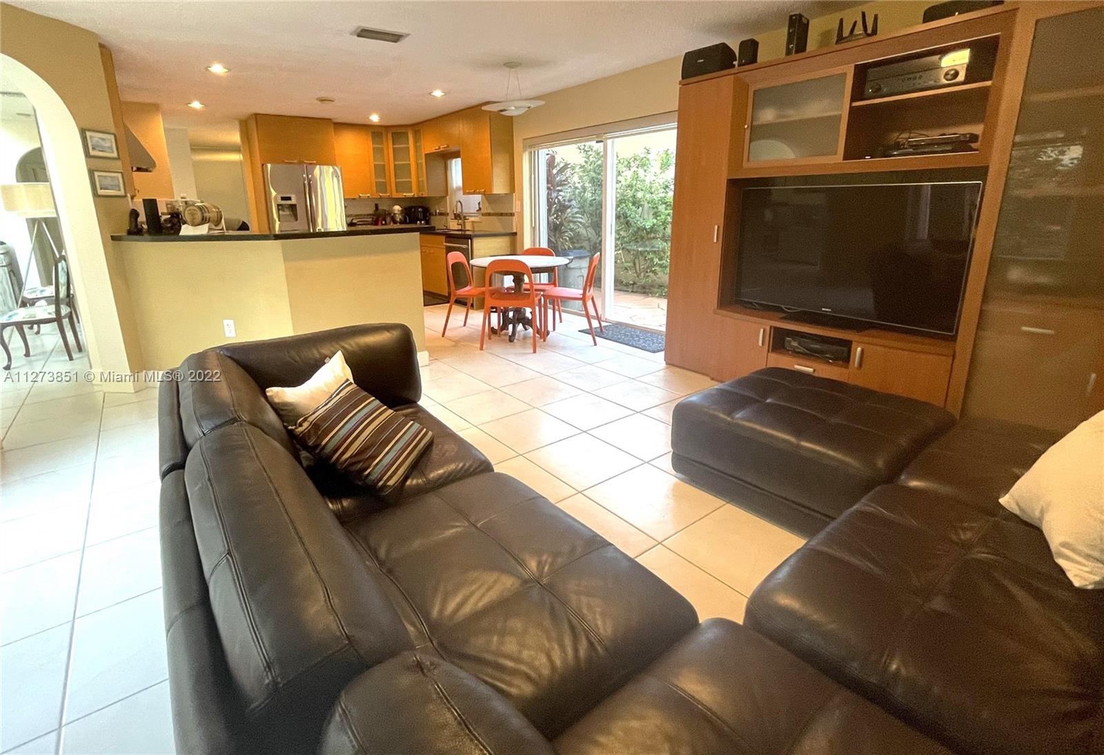 The RITZ 2 Floors, 4 Bedrooms and 2 ½ Bathrooms, nice 2 Car Garage, Big master Bedroom, comfortable Walk-in-closets, 3 Bedrooms with closets, renovated bathrooms and renovated kitchen with top stainless steel appliances, built-in wine fridge, quartz countertop and backsplash, coffee break, wonderful family room, separate dining room, comfortable living room plenty of natural light. Laundry room stacked front load washer, dryer and utility sink, water softener, concrete patio, with mango trees and other fruits and herbs, a place to enjoy the greenery and privacy, brand new roof replaced in August 2022. Driveway for 4 cars. Aluminum Accordion shutters in all windows and doors. Low HOA maintenance fee. Excellent location close to A+ School, shopping, parks, dog park, restaurants & much more.