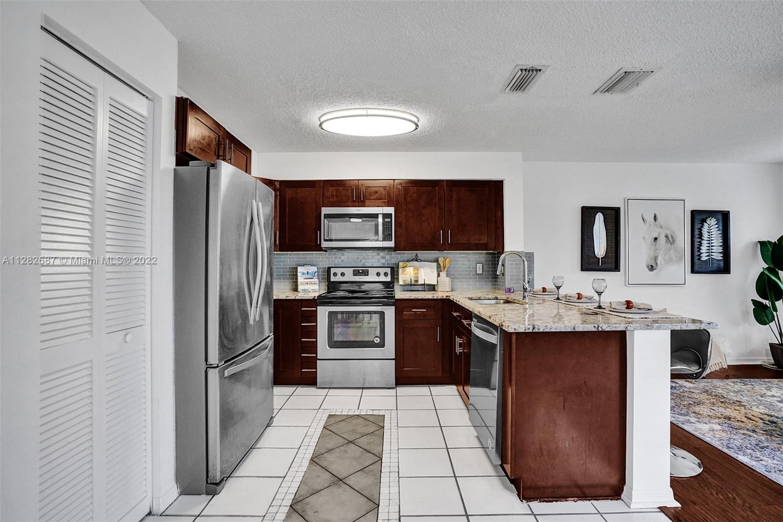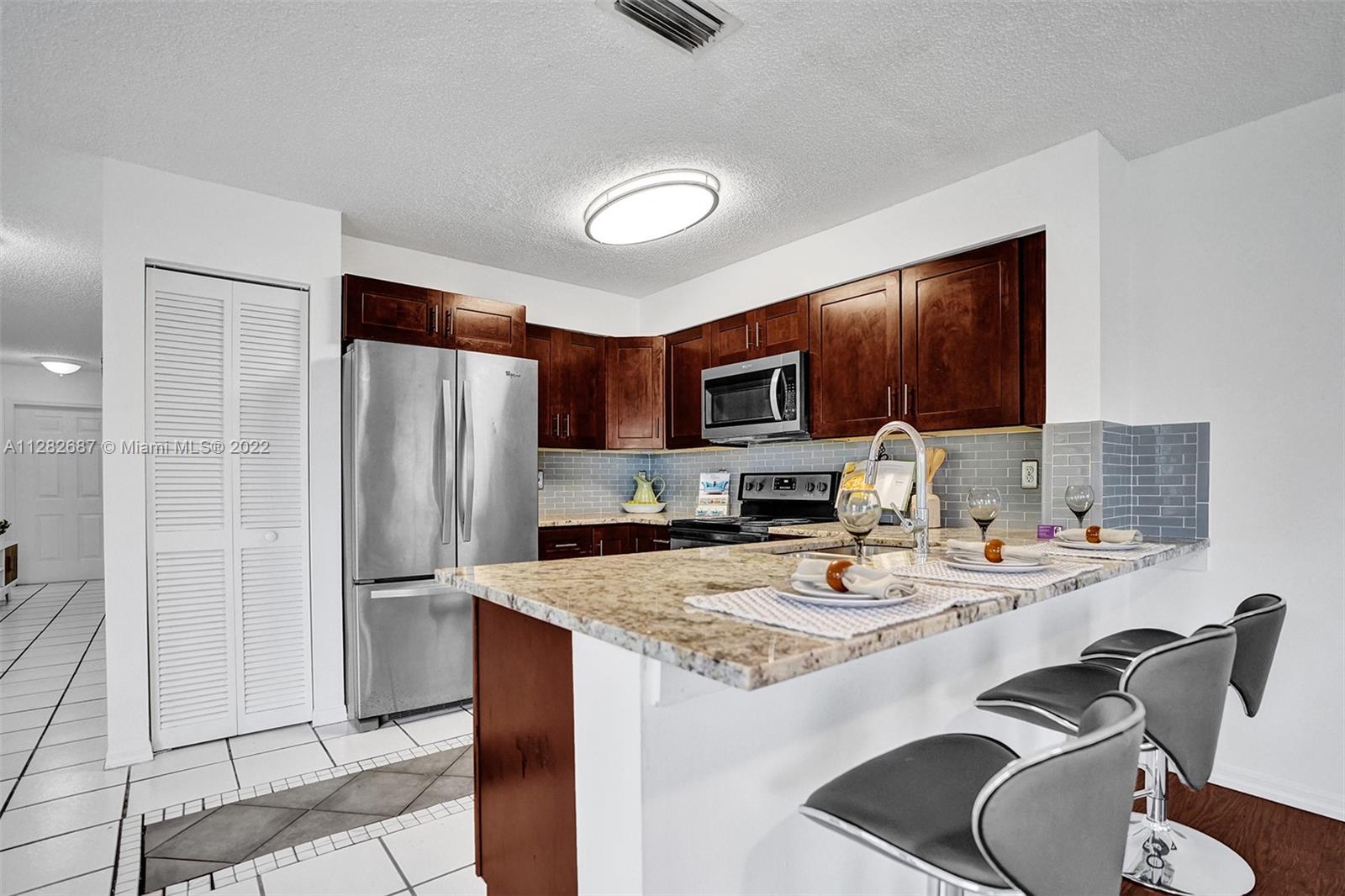 Looking for a place to call home, where you will actually meet your neighbors and children still play outside, then welcome to The Village at Harmony Lake !!! Spacious 4 bed, 2.5 bath townhome in Davie over 1800 sqft w/garage. Located on quiet cul de sac with peaceful water views & screened porch. This light and bright unit features upgraded granite kitchen and stainless steel appliances with breakfast bar overlooking large family room with water views. The dining room accesses the screened porch, perfect for family barbecues! Large master suite with updated bathroom and walk-in closet. Newer laminate flooring in all bedrooms. New A/C. Hurricane shutters in garage. Low HOA $472 quarterly. Community pool and playground. Superior schools. A pet friendly community perfect for your family!