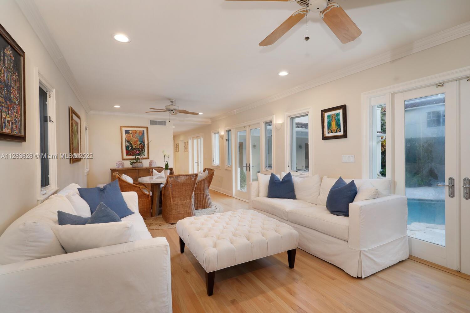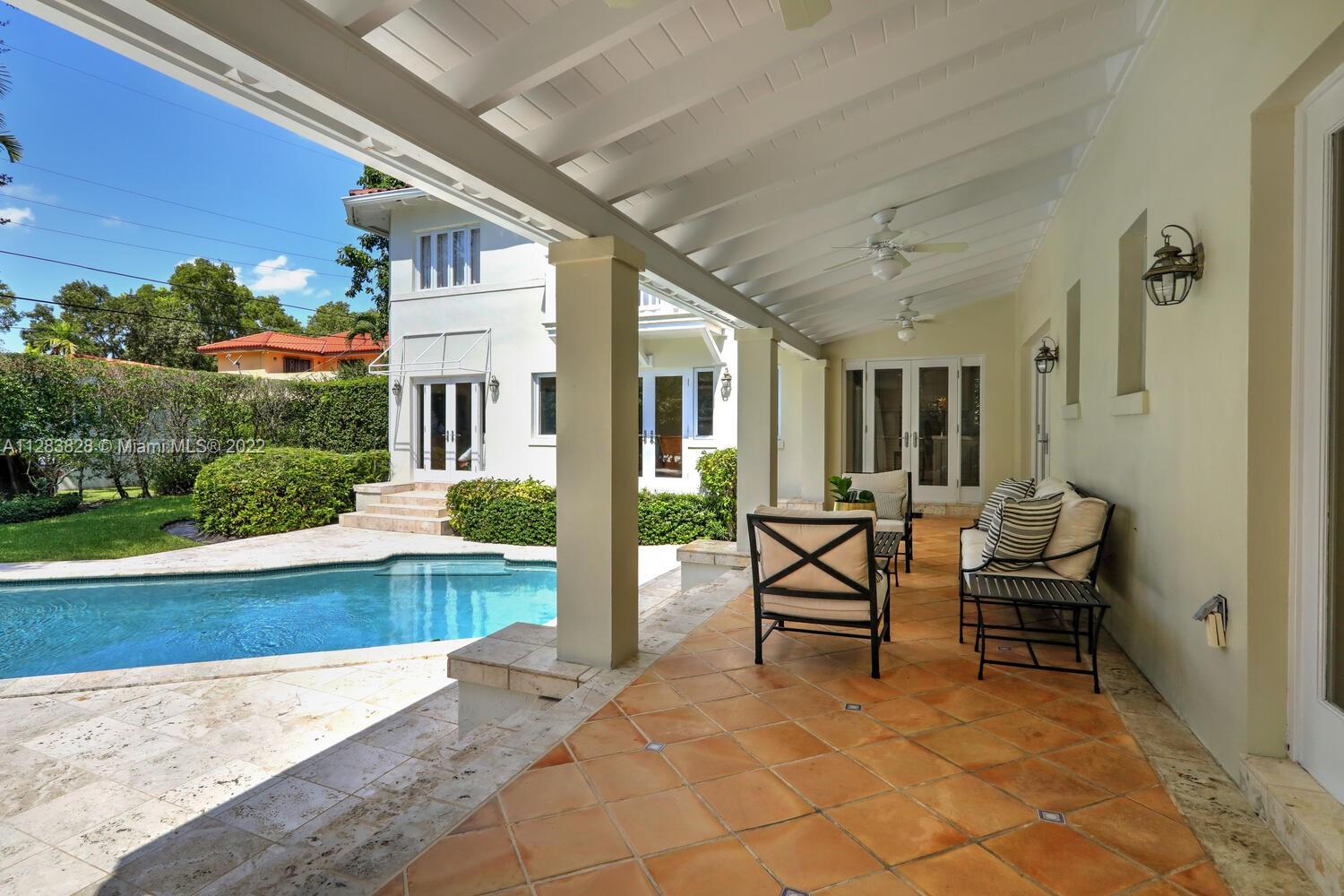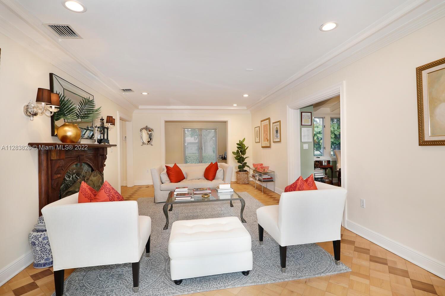 Welcome to "2 Oaks" in Coral Gables.This gorgeous Colonial style home was redesigned & revamped by renowned architects Portuondo Perotti in the early 90's. Situated between 2 gorgeous mature oak trees, the curb appeal this home evokes is exceptional.This home sits on a double lot & is in one of best locations in Coral Gables. Providing 3 bedrooms + den (potential as a 4 bed) & 4 full bathrooms, original wood burning fireplace, indoor laundry room, immaculate original wood floors, updated white marble kitchen, sunroom w/bar, & all the downstairs areas lit w/natural sunlight overlooking the lusciously landscaped picturesque backyard surrounding the pool. A superb family home & designed for entertaining. Easy walking distance to Biltmore Hotel, Church of Little Flower & Downtown Coral Gables.