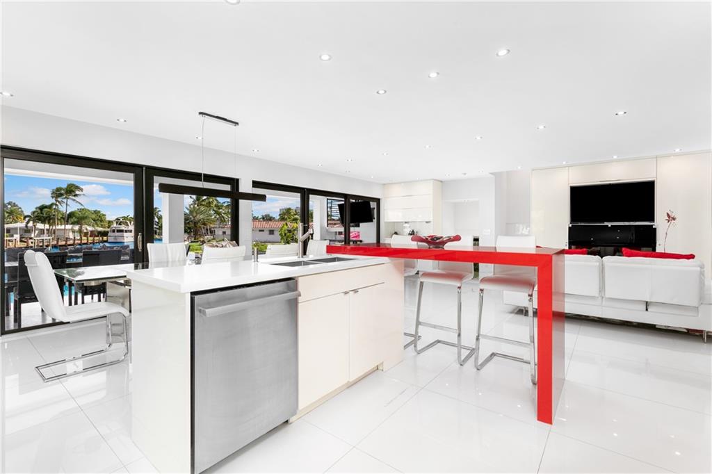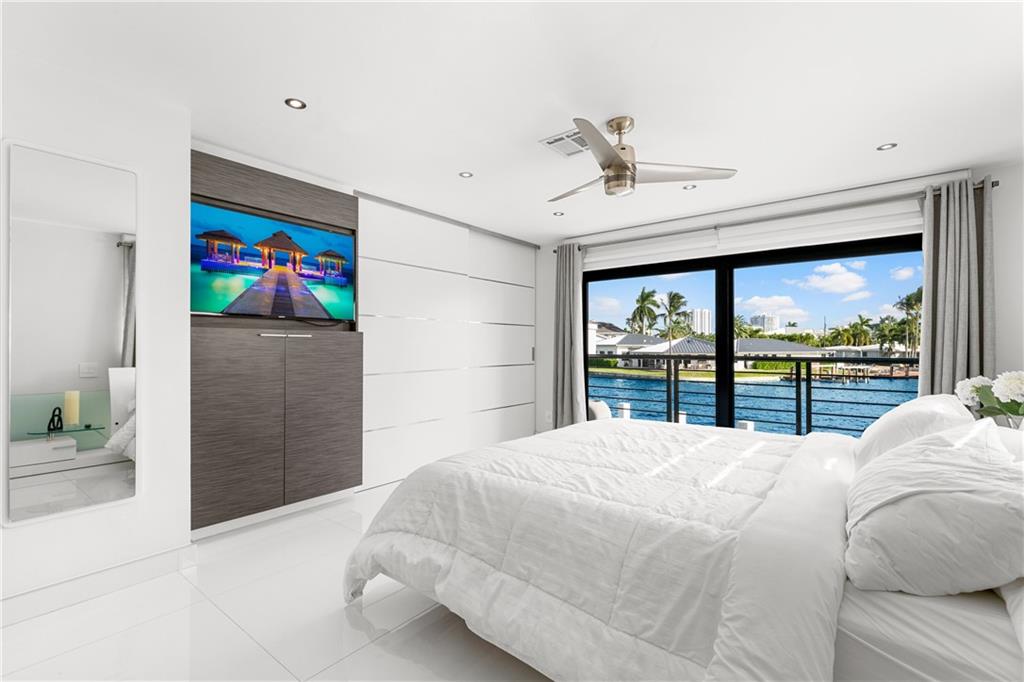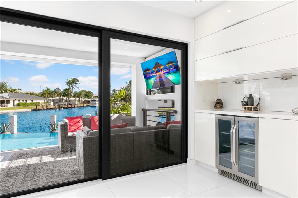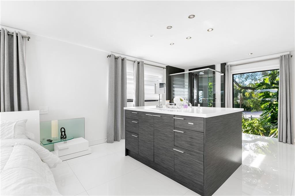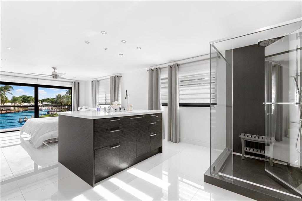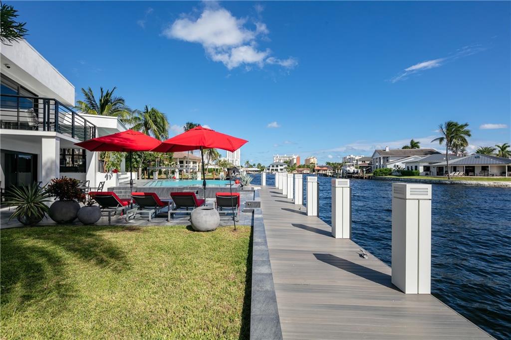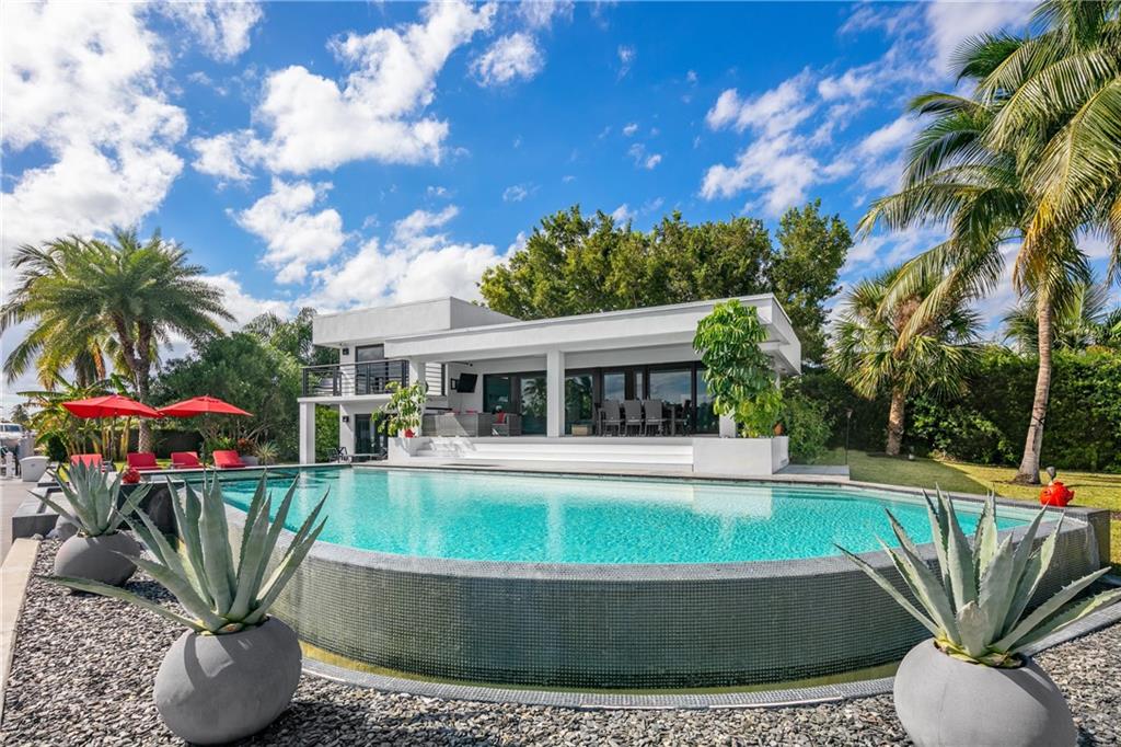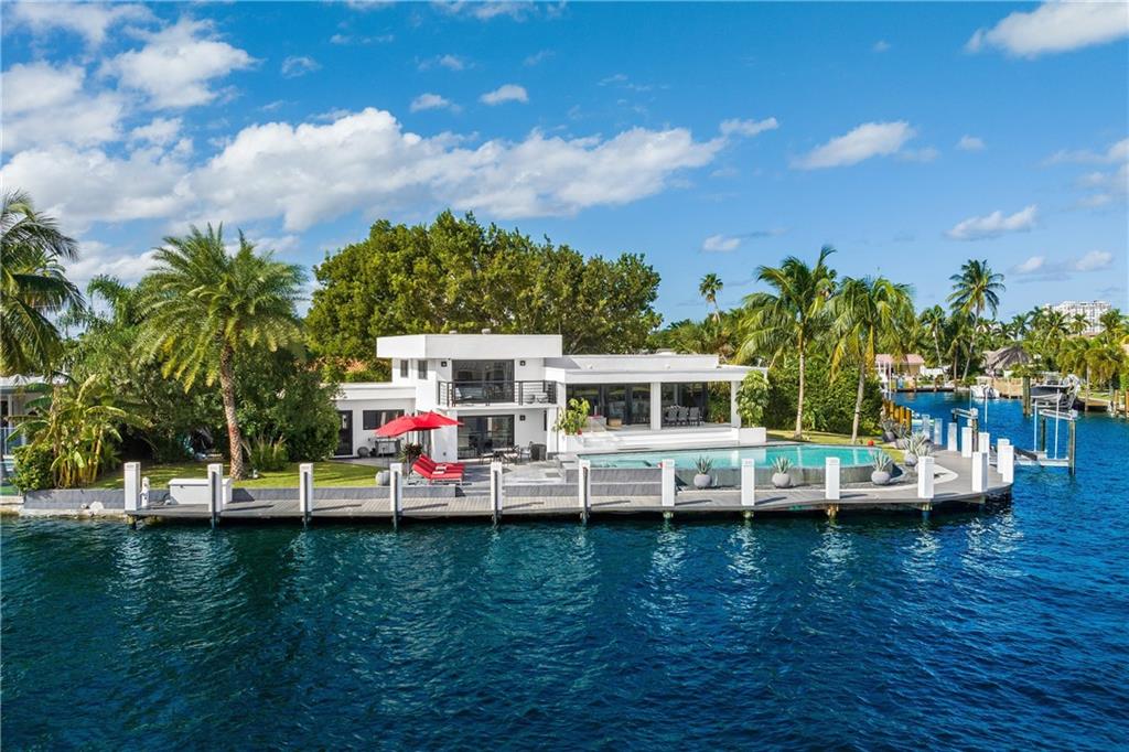 Set against an idyllic waterfront backdrop, this modern marvel on a point lot celebrates substance & style under one roof. Bright, open spaces throughout the custom-built estate offers designer details that invite the outdoors inside- enjoy expansive waterfront views from every room. An impressive clean-lined gourmet kitchen features cutting-edge Thermador appliances and custom cabinetry. The upstairs master bedroom boasts modern and tranquil vibrance with its own private balcony. The exterior boasts 190' feet of waterfront with 180' of composite dock (ocean access and no fixed bridges) & 24,000 lb. boat lift on the East side. Infinity pool with expansive outdoor living spaces for entertaining. This impressive residence is offered fully furnished and move-in ready.