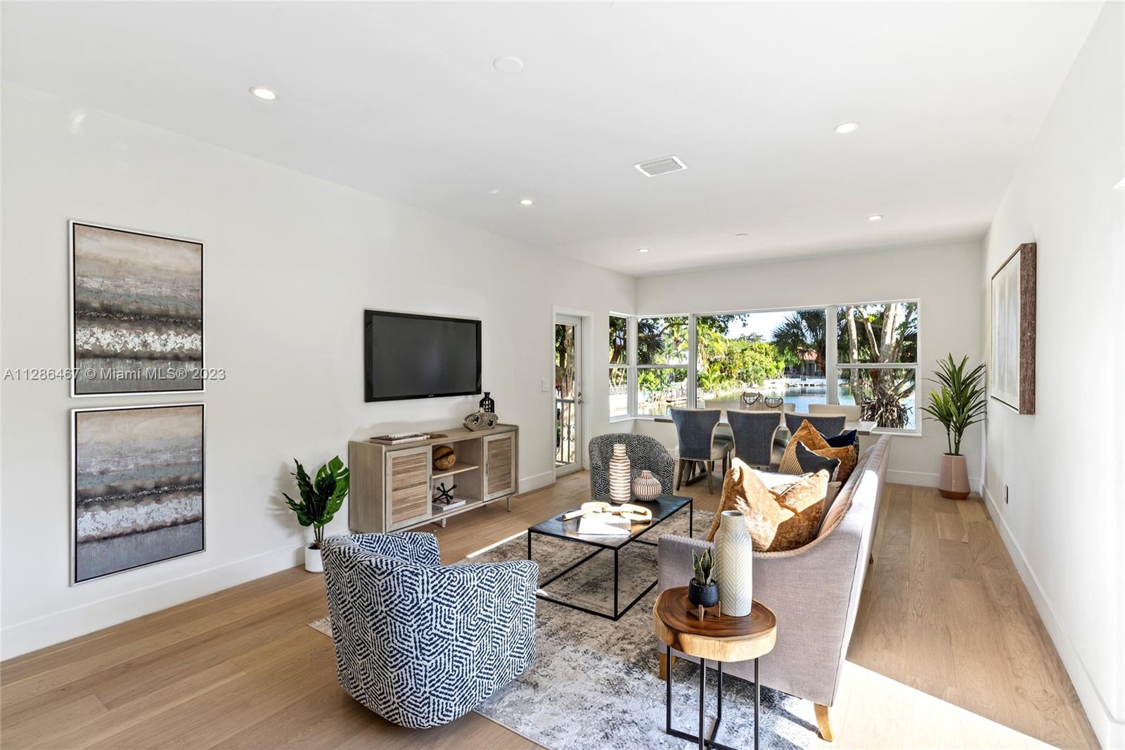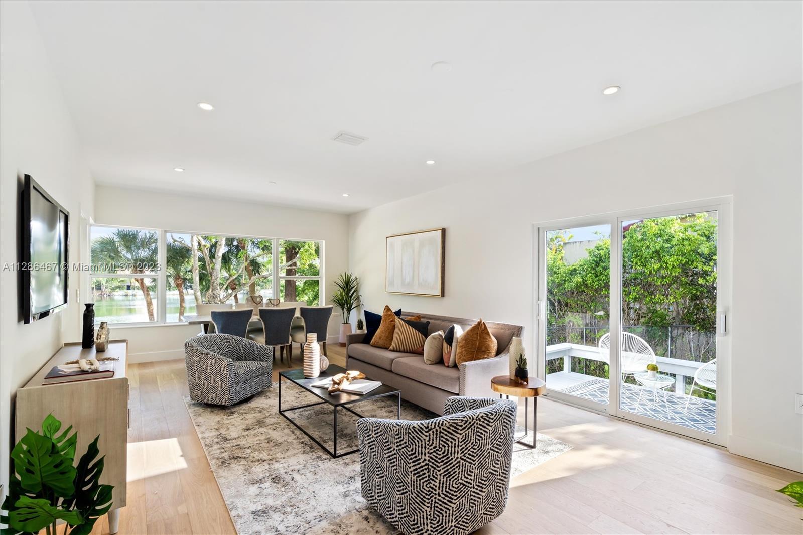 Welcome to your private updated oasis in desirable Miami Shores! Enjoy water views from every room in this updated 3 bed - 2 bathrooms + an office/den space. Walk into a bright & spacious living/dining room with endless water views. Enjoy water activities from your private dock on Mirror Lake - the only freshwater lake in Miami Shores. Private balcony from your bedrooms overlooking your private lake. Recently redone closets, wood floor throughout. Updated kitchen & bathroom, impact windows, 2 car garage. Huge terrace w/lush landscaping. Close to downtown Miami Shores, restaurants & shops.