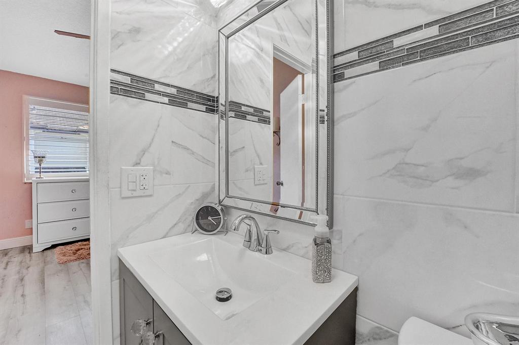 Experience the best of beach area living in this fully renovated east pompano beach townhome. Updates include white oak wood laminate floors, marble tiled bathrooms, stainless steel appliances, granite kitchen countertops with wood thomasville cabinetry providing lots of additional storage are just to name a few. Moveable butcher block kitchen island. Upstairs you'll find double master bedrooms with en-suite baths, additional storage closets and a stackable washer/dryer. Natural light pours into each bedroom with builder added option vaulted ceilings. Even more storage in large attic with pull down stairs. The half bath downstairs is convenient for guests and features floor to ceiling marble. The back patio has plenty of room for your guests and is great for pets with a private grass area.